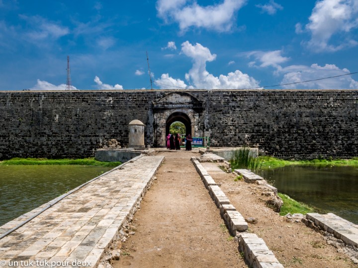 Nous arrivons après plus d’une demi-heure de marche à la bibliothèque. Fermée! Les visites ne sont possibles qu’à compter de 16 h. Nous continuons notre marche jusqu’au fort qui est à une autre demi-heure de marche (on sue notre vie et il n’est même pas 10 h le matin). Enfin, nous sommes heureux d’arriver. Le site du fort, construit par les Hollandais, est très grand, mais il n’en reste plus grand chose en fait… la guerre… Nous y restons tout de même une bonne heure. On ne marche pas vite sous cette température et il vaut mieux économiser son énergie!