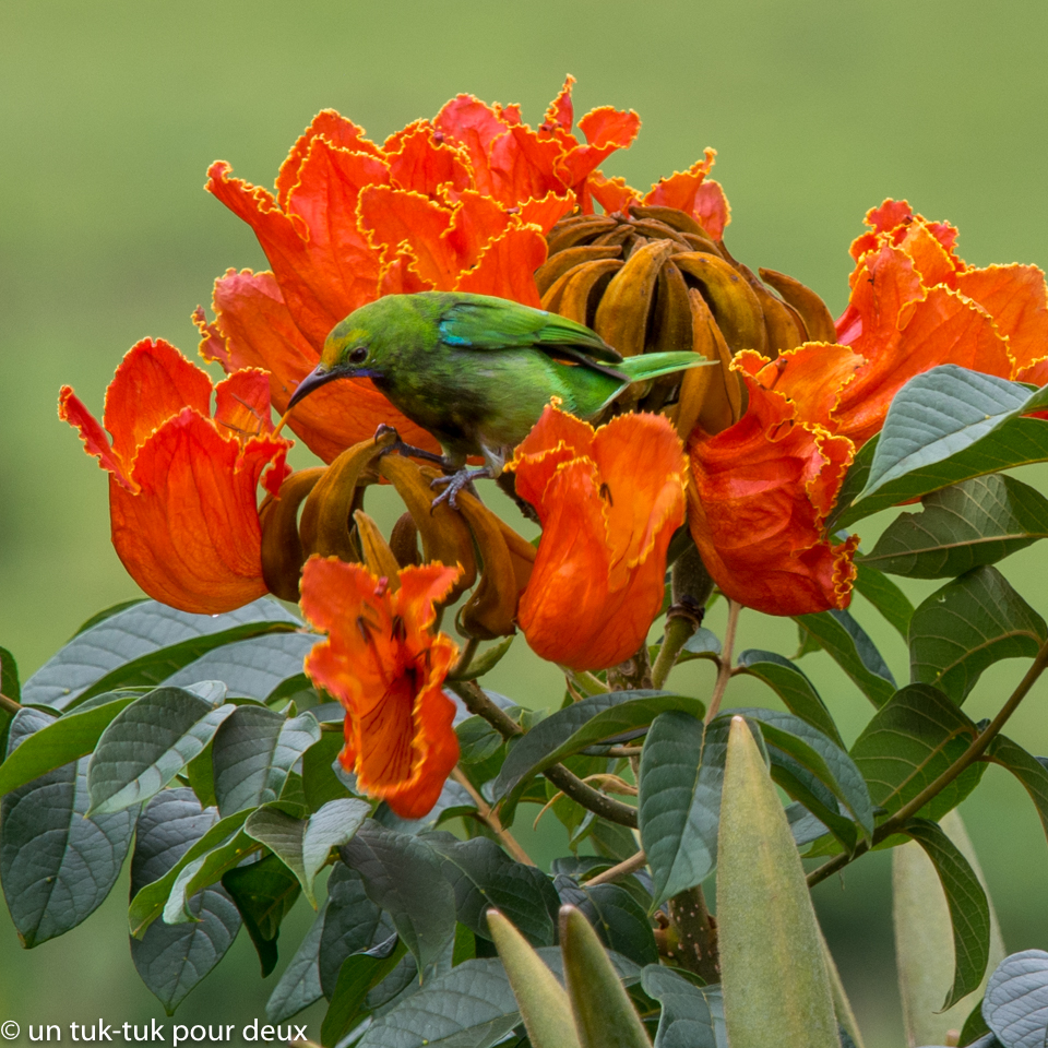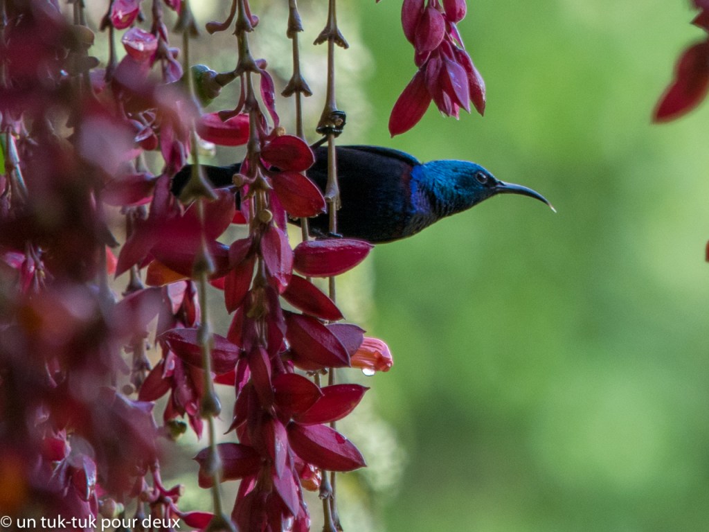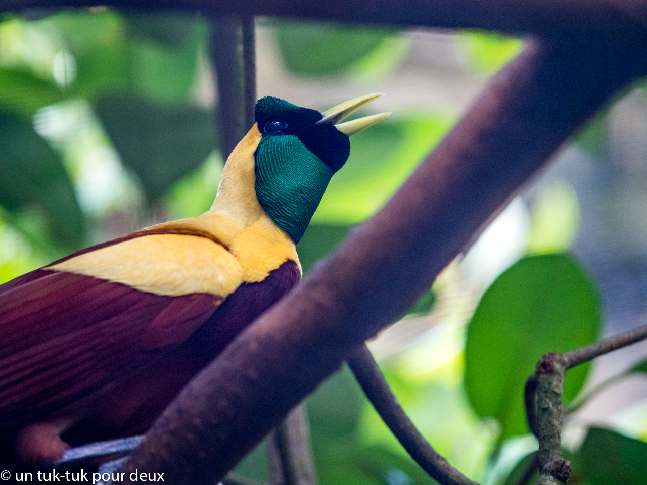 Ce parc, délaissé par les touristes occidentaux et situé dans les environs de Bali, est un enchantement. À l’instar du Biodôme à Montréal (pour celles et ceux qui connaissent, vous savez que l’on y reproduit l’habitat naturel des animaux que l’on y retrouve), le Bali Birds Park reproduit l’habitat naturel de chaque oiseau à la différence que celui-ci est complètement extérieur. Il est tellement bien fait qu’on peut presque oublier qu’il y a des grillages autour de nous. On s’y promène dans les forêts ou la jungle des quatre coins du monde. Ainsi, pour revenir à notre sujet, il est possible d’y observer une dizaine de variétés de ces oiseaux hors du commun que sont les paradisiers. (Lire notre billet ici)