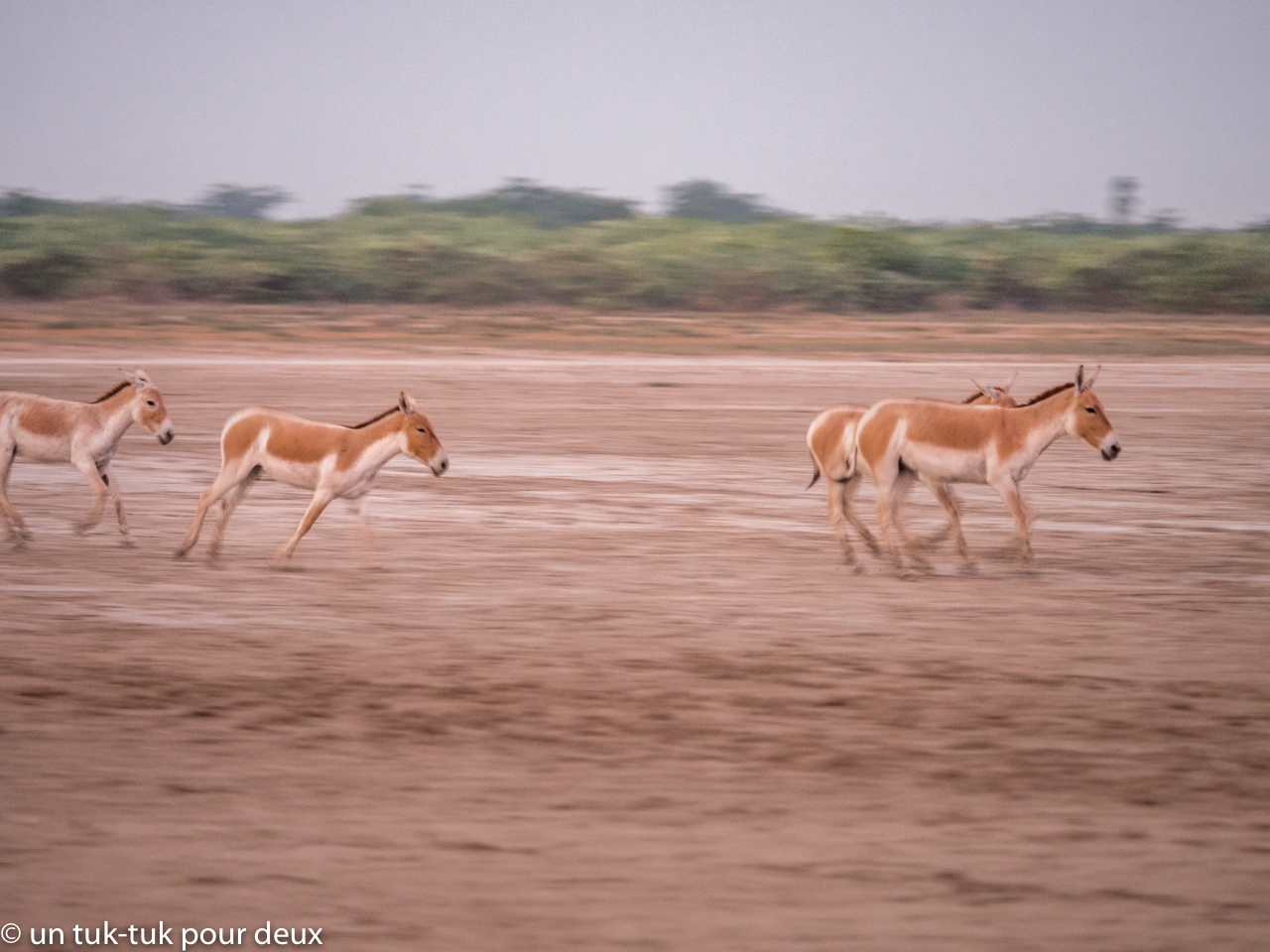 On s’y promène en jeep avec un guide-chauffeur et dès l’arrivée dans le sanctuaire on est ébahi. Le visuel qu’offre le marais salant est une attraction en soi. Toute cette étendue de terre craquelée à perte de vue est grandiose! Mais, le spectacle ne s’arrête pas là. Après environ une trentaine de minutes à rouler sur cet espace infini nous apercevons déjà nos premiers ânes. Et ce sera aussi simple que cela tout au long de nos deux excursions dans le sanctuaire. Il est très facile de les observer. Ils sont beaux avec leur belle robe ambrée et blanche tout en ayant une drôle d’allure avec leur tête trop grande par rapport à leur corps. À propos, saviez-vous que ces ânes sont tellement rapides qu’ils peuvent atteindre 70 km/h ?