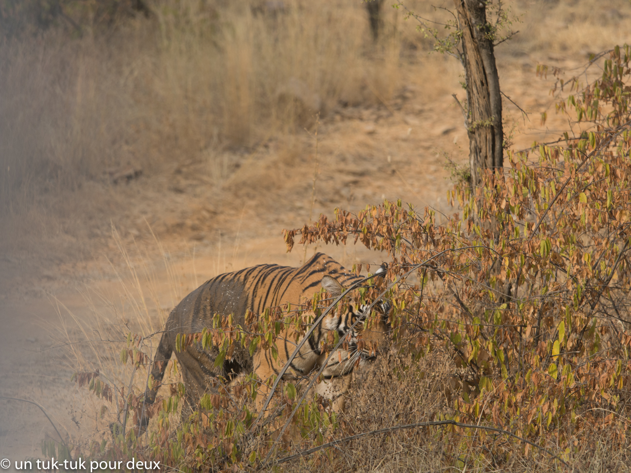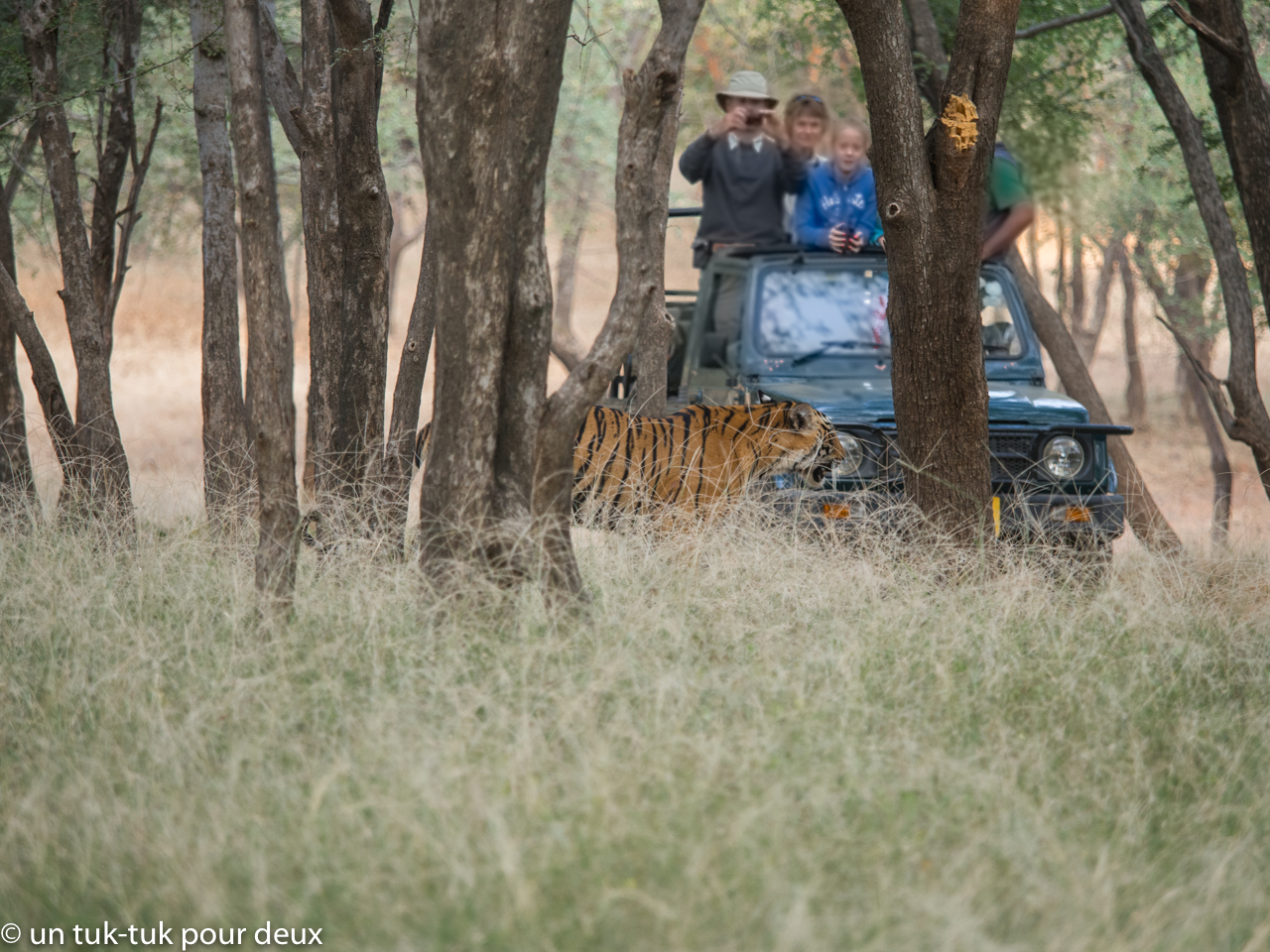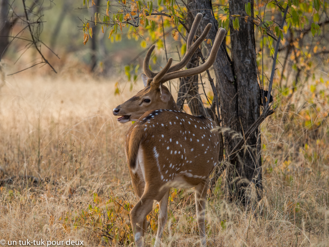L’une des rencontres sauvages les plus captivantes pour nous a eu lieu au Parc national de Ranthambore dans l’État du Rajasthan en Inde. Le parc d’une superficie de 1 334 km2 dont 400 km2 sont ouverts au safari comptait en 2017 environ une soixantaine de tigres (adultes et petits). Croyez-nous, ce fut tout un baptême de safari. Grâce bien sûr à la chance, mais aussi à un excellent guide qui connaissait très bien le comportement du tigre, nous avons eu la chance de voir d’en voir à chacun de nos deux safaris. La fébrilité était toujours aussi forte chaque fois qu’un tigre apparaissait. Le parc compte aussi un très grand nombre d’autres mammifères et d’espèces d’oiseaux.