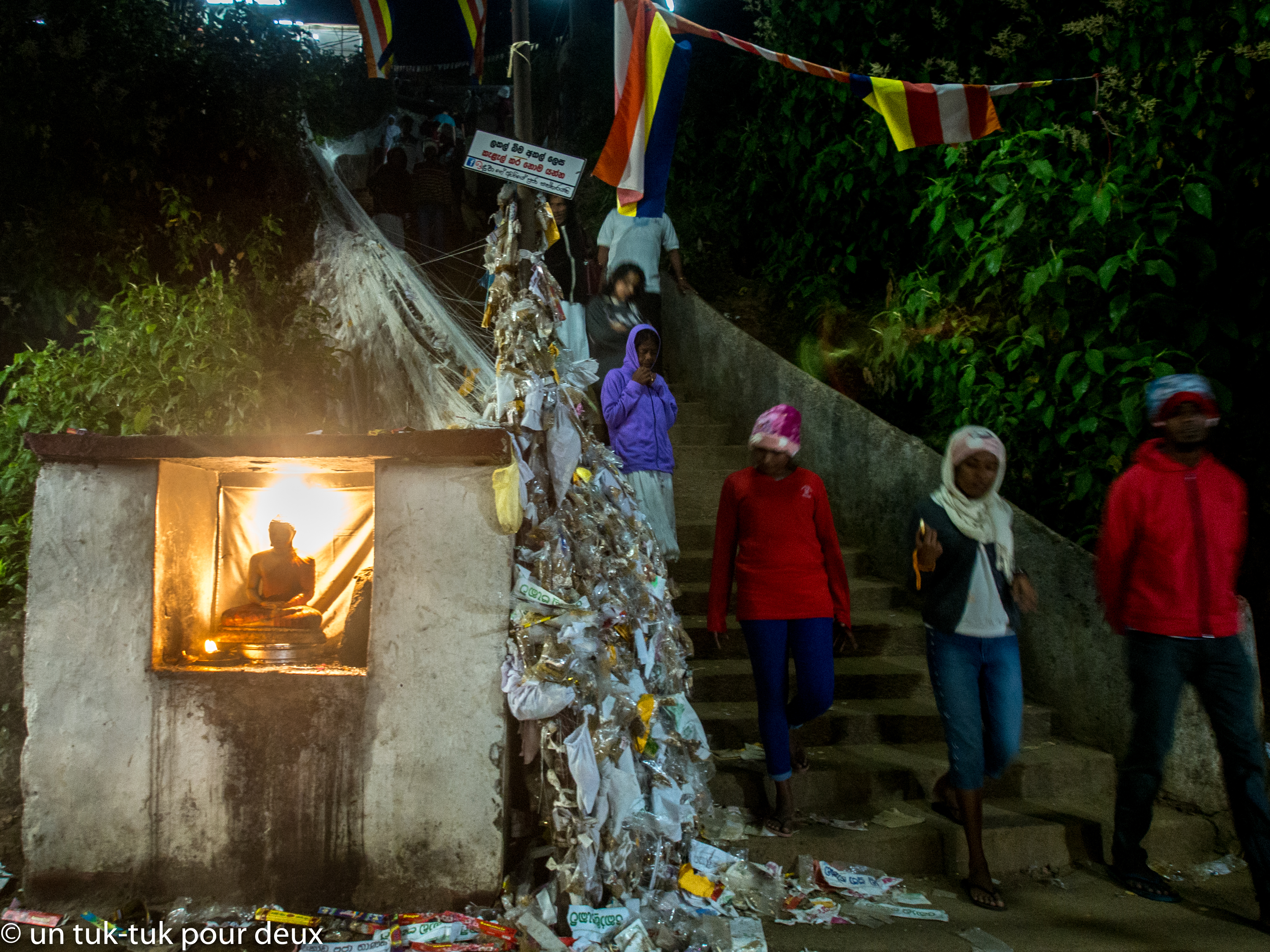 Celles et ceux qui nous suivent depuis les débuts de notre blogue se rappelleront peut-être de notre, appelons ça un exploit, donc de notre exploit pour atteindre le temple sur le sommet du Adam’s Peak. Le Pic d’Adam est un site religieux pour les bouddhistes, les hindouistes, les musulmans ainsi que les chrétiens, ce qui en fait un lieu très particulier.