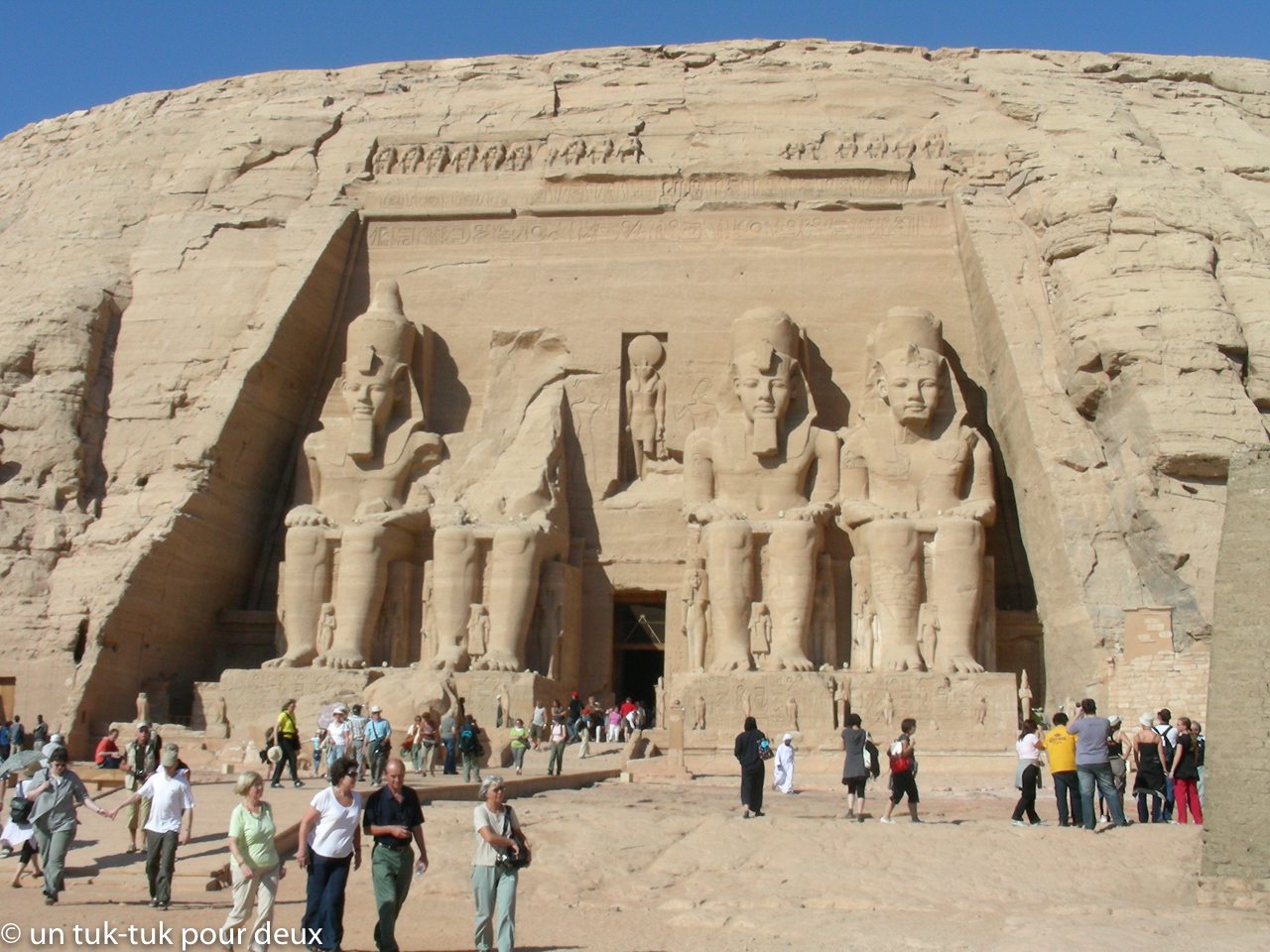 L’Égypte, que nous avons visitée en 2008, regorge de nombreux temples aussi impressionnants les uns que les autres. Mais ceux d’Abou Simbel, qui sont situés dans le sud de l’Égypte, nous ont particulièrement interpellés. Ils furent construits par Ramses II entre 1304 et 1213 avant J.-C. et étaient destinés à son propre culte ainsi qu’à celui de son épouse Nefertari. Ils sont classés patrimoine mondial par l’UNESCO.