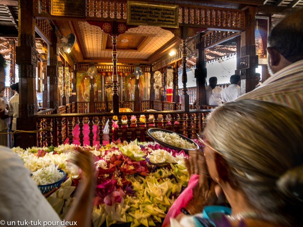 Le temple de la Dent de Kandy au Sri Lanka est un de ces temples que nous avons adoré pour sa cérémonie de la Dent. Le temple en lui-même est beau, mais beaucoup le surpassent, par contre assister à la cérémonie de la possession de la Dent, ça c’est saisissant!
