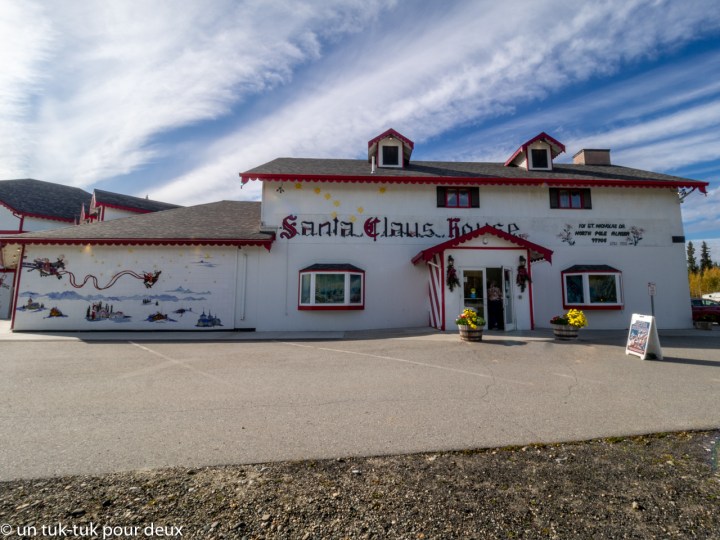 Enfin arrivés en Alaska, c’est par la ville de Fairbanks que nous y avons fait notre entrée et dormis notre première et par la force des choses, notre deuxième nuit. C’est en fait une ville bien ordinaire d’environ 30 000 habitants, mais c’est de là que nous nous rendons dans la ville de North Pole ou si vous préférez, au Pôle Nord où habite évidemment notre meilleur ami le Père Noël. Les noms des rues sont à l’avenant comme la Santa Clauss Ln, ou la St. Nicholas Dr., etc.