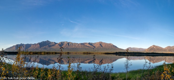 On ne vous le cache pas, ce fut un gros coup difficile à prendre, qui l’est encore d’ailleurs quand on s’arrête pour y penser. Mais, trêve d’apitoiements, go, go, go en route vers l’Alaska! Et nous voilà partis pour un sprint de 7 000 km en neuf jours! Pourquoi si vite vous dites-vous? Nous ne savons même pas ce que nous allons faire là! Erreur chers amis! Nous savons au moins deux choses. 1. l’automne est à notre porte et la température qui va avec et 2. la vedette de l’Alaska, le Parc national et réserve Denali, ferme l’accès de 70 % de son territoire le 12 septembre. Nous devons donc y être au plus tard le 9.