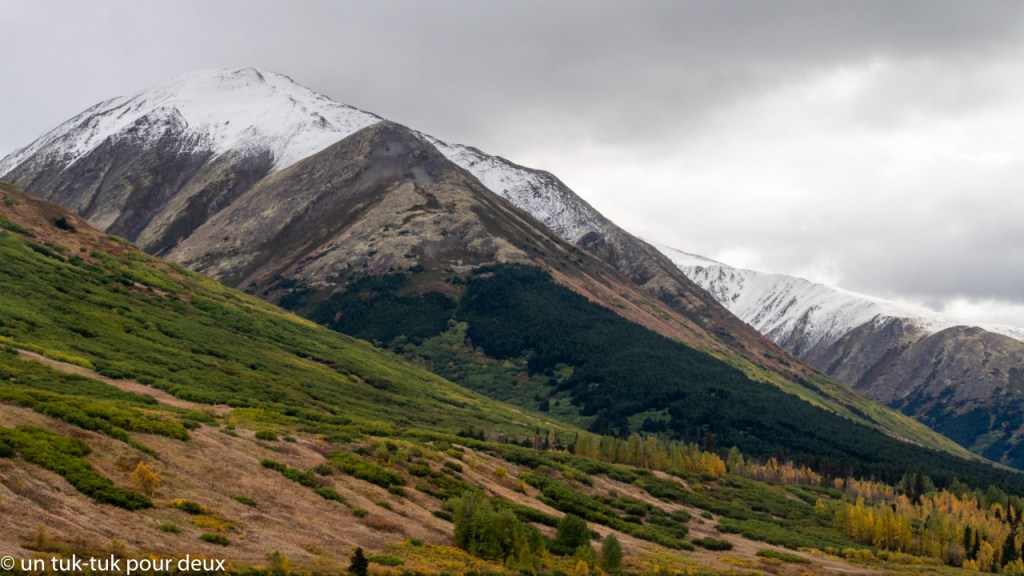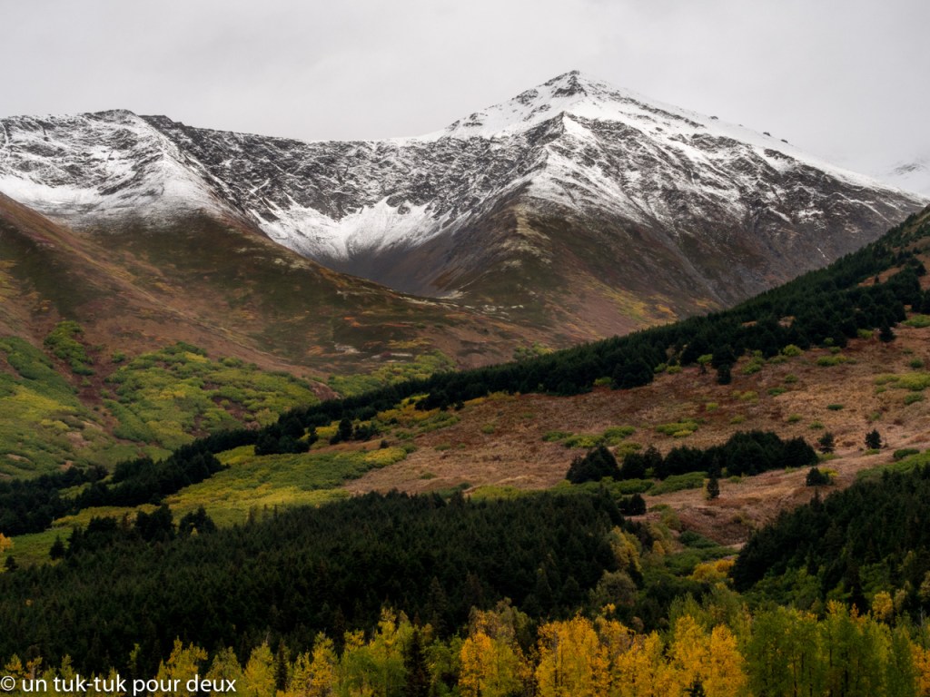 La troisième journée, c’est le départ pour Hope, située du côté sud de Turnagain Arm Bay. Au nord de cette baie, c’est la Seward Highway et Anchorage. Comme la plupart du temps en Alaska, la route est un enchantement pour les yeux et avec les montagnes saupoudrées de neige c’est encore plus beau. Alors voici quelques photos.