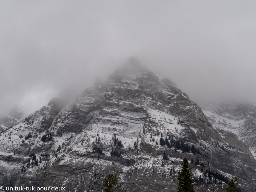 Plus loin, la neige diminue et la route redevient sèche, nous arrivons à hauteur du légendaire Lac Louise dont on vous reparlera pour ensuite atteindre notre destination de dodo à Dead Man’s Flat, un peu passé Banff.