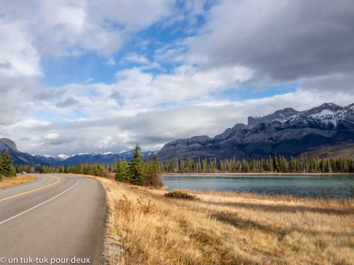 La route qui relie les villes de Jasper et Banff a une longueur d’environ 300 km et elle est située entièrement à l’intérieur des deux parcs du même nom. Et quelle route! Il paraît que c’est la plus belle au Canada. Pas certains car, avouons-le, nous sommes un p’tit peu chauvin quant à nos routes de la Gaspésie et de Charlevoix, mais elle s’en approche! Cependant, nous l’affirmons, elle l’est sans contredit dans l’Ouest!
