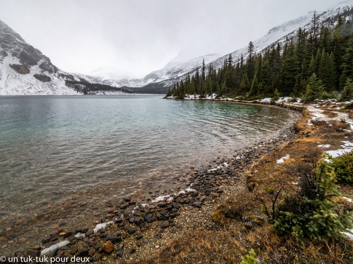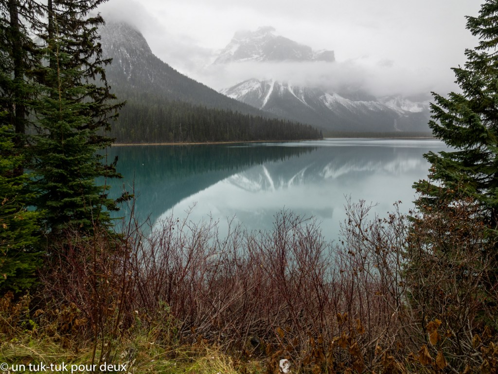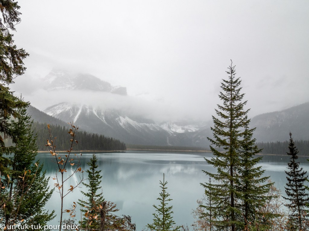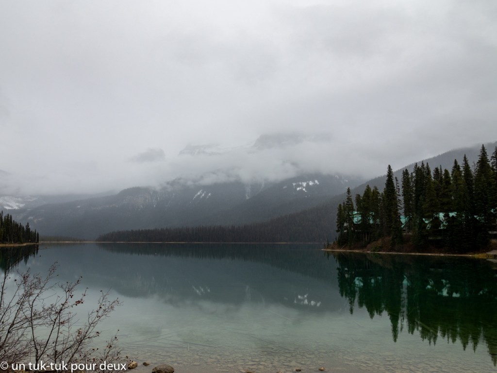 Quant au lac Emerald, c’est un gros WOW! Malgré la température maussade, c’est magnifique! À notre avis, plus beau que le lac Louise! Et en plus, il n’y avait personne… Superbe, à voir absolument!