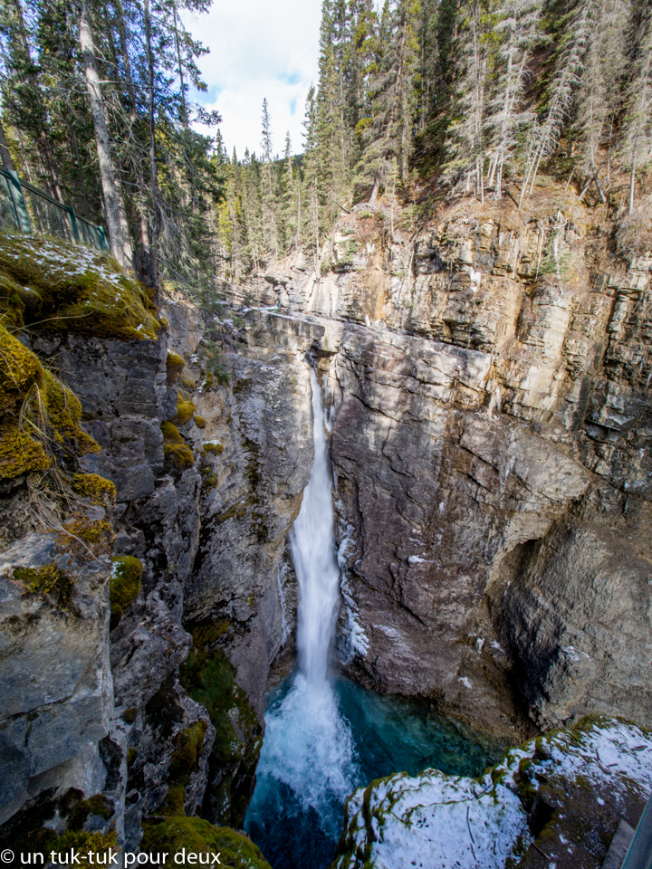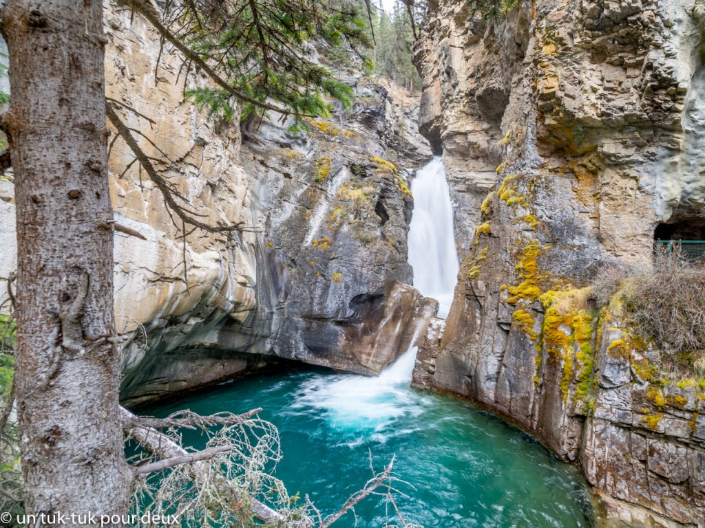 Au programme du lendemain, direction nord sur la Bow Valley Parkway, une route scénique qui longe l’autoroute et nous nous arrêtons au Canyon Johnston.