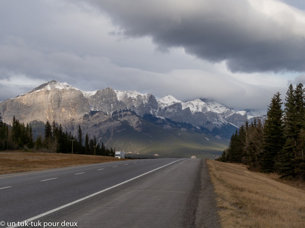 Bien installés dans un condo à Dead Man’s Flat, où il n’y a rien d’autre que ce complexe de condos, le prix en est très modique, nous planifions les prochains jours dans la mythique région de Banff.