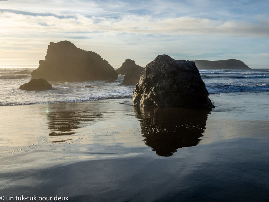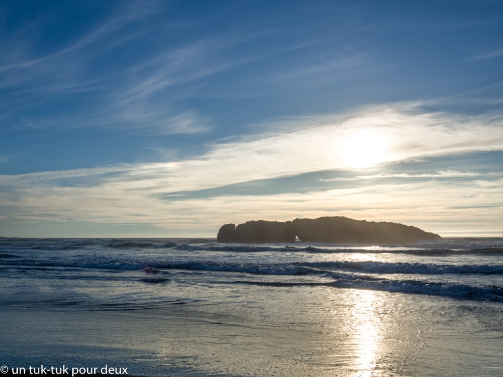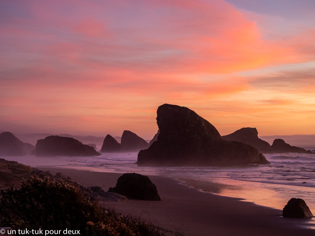 L’endroit où nous avons passé notre dernière nuit en Oregon est digne d’être souligné. Il s’agit d’un pull out qui a un accès direct à la plage. Merveilleux pour se dégourdir les jambes, prendre une bonne bouffée d’air, relaxer et siroter un petit verre de vin. Et en bonus, de sublimes couchers du soleil à admirer.