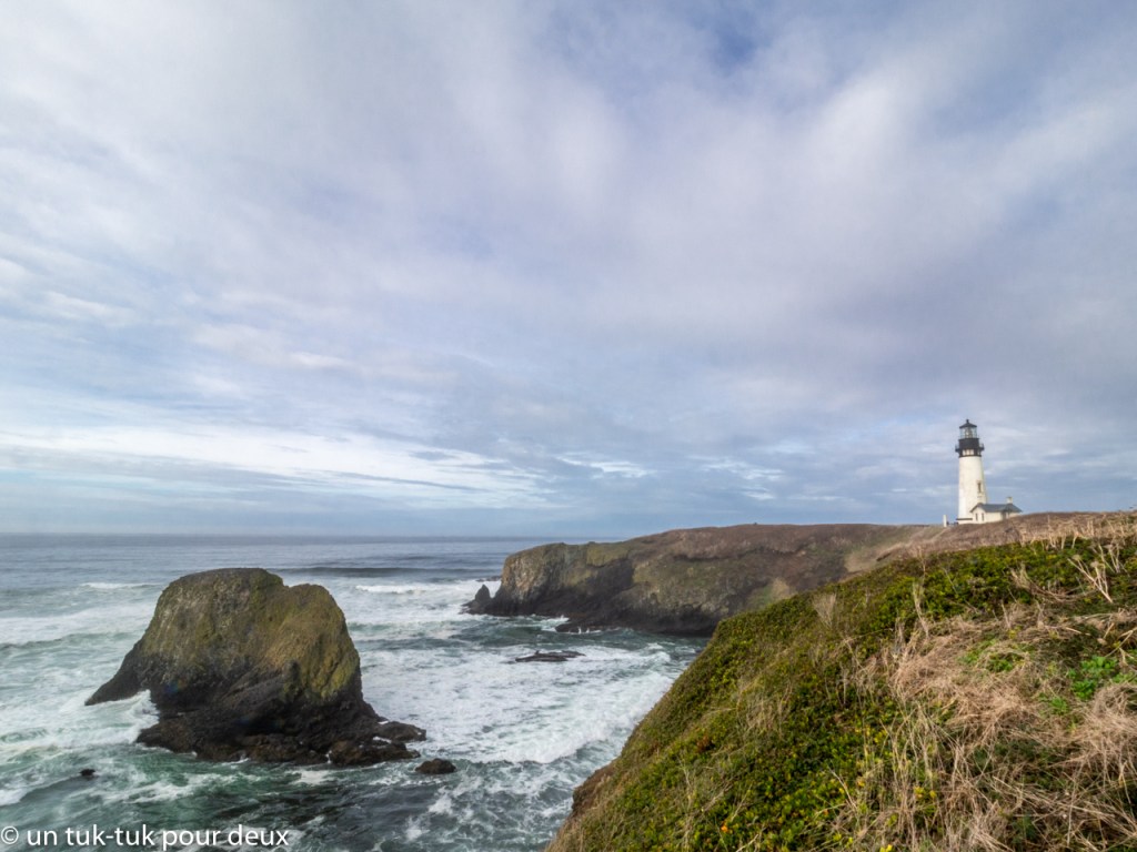 Qui dit bord de mer, dit phare et la Californie ne fait pas exception. Et comme ils sont toujours construits dans des endroits stratégiques avec vue imprenable, et bien! il faut s’y arrêter. Alors, le premier phare visité est le Yaquina Head. En fait, nous n’avons pas visité l’intérieur, mais seulement admiré l’emplacement et le décor magnifique qui l’entoure.