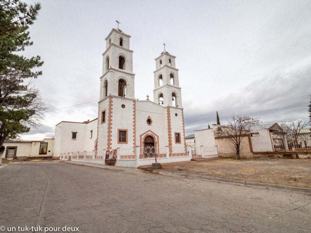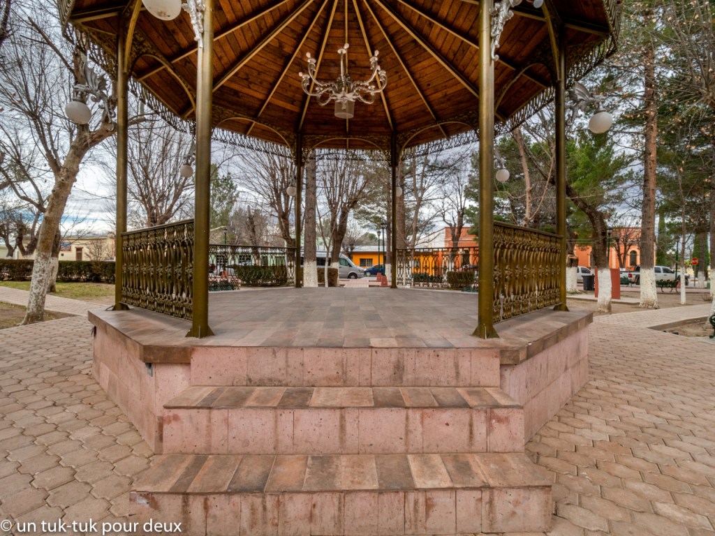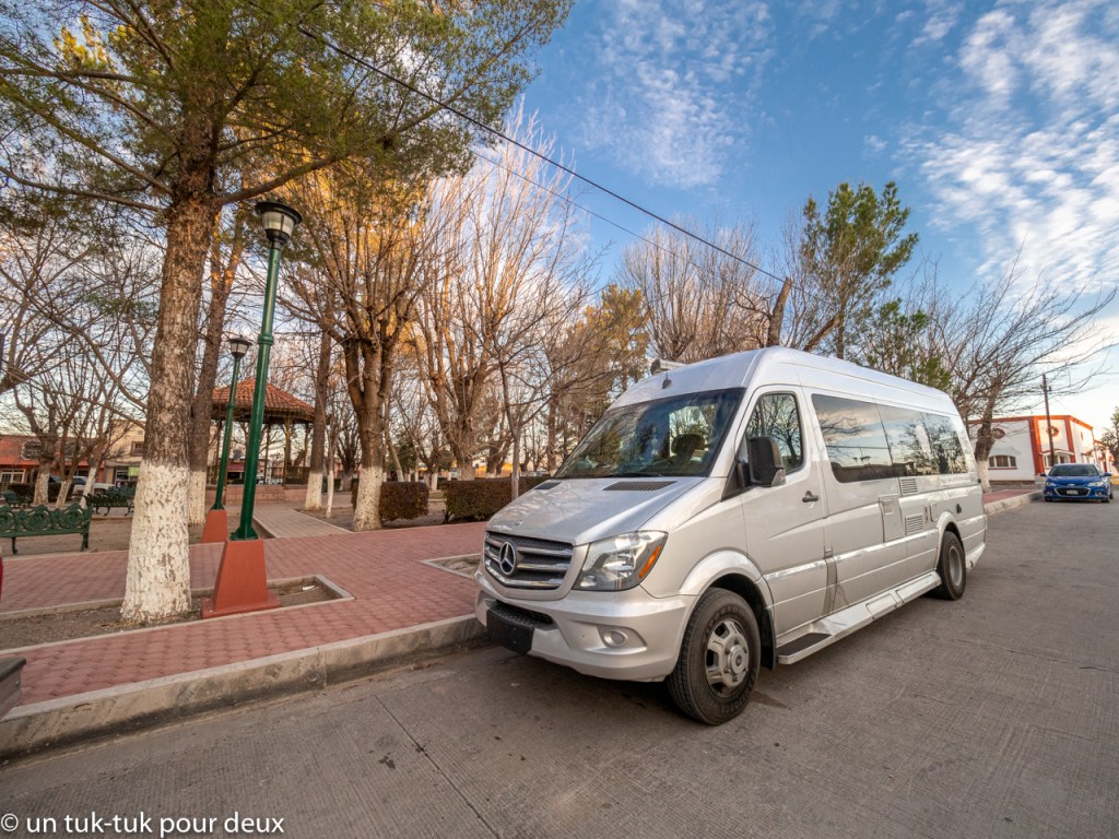 La journée suivante nous amène à bivouaquer sur la place centrale du joli village de Casas Grandes, une toute petite bourgade très propre et accueillante. Les gens nous sourient, nous saluent et nous ont d’ailleurs confirmé que ce n’était pas un problème de stationner là pour la nuit et que c’était sécuritaire. Parfait, on aime l’endroit, on sort découvrir les alentours et on décide de souper dans le seul restaurant ouvert de la plaza. Encore là, on est super bien accueillis et nous avons très bien dormi!