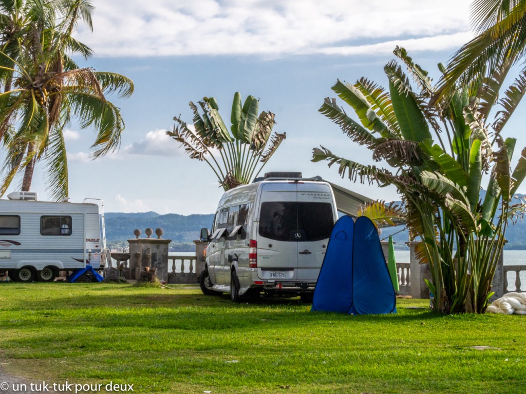 San Blas, camping Playa Amor – Grand terrain de pelouse, séparé de la plage par une balustrade. 200 $M/nuit avec tous les services. À 10 minutes à pied de Aticama où il y a plusieurs restaurants et une petite épicerie. On a eu droit à de la musique la première nuit jusqu’à 1 h du matin, mais ce fut très calme les deux nuits suivantes. Beaucoup de moustiques (ou de sandflies) le soir, mais rien dans la journée. Nous avons apprécié l’endroit. Proprio vivant sur le terrain par très jasant.