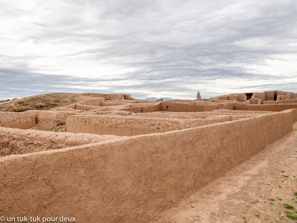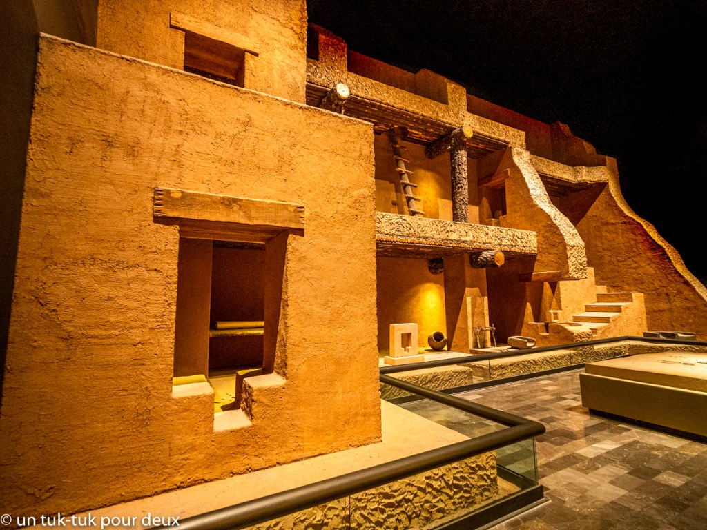 De la place centrale, cela peut se faire à la marche, mais nous partons avec le tuk-tuk pour visiter le Museo de las Culturas del Norte et les ruines du village précolombien Paquimé, classées au patrimoine mondial par l’UNESCO depuis 1998. Tous deux inclus dans le prix du même billet. Le musée nous intéresse bien et le site présente beaucoup de similitudes avec les vestiges en adobe qu’on retrouve au Nouveau-Mexique et en Arizona. L’endroit est très peu touristique, nous sommes seuls avec les employés qui travaillent à la restauration. Nous prenons notre temps et profitons de la très belle vue sur la vallée et les montagnes alentour. Quelques semaines plus tard, lorsque nous visiterons le magnifique musée d’anthropologie de Mexico (à visiter obligatoirement), nous verrons des reproductions grandeur nature des habitations de cette région. Comme vous pouvez vous en douter, Paquimé est le premier site archéologique d’une longue liste que nous aurons la chance d’explorer au cours de notre découverte du Mexique.
