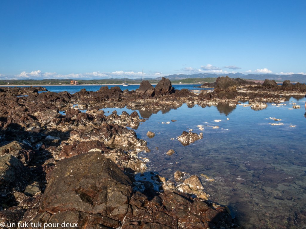 Mer chaude, berge très propre et peu de vagues, ça frôle la perfection. Très souvent, on y observe des dauphins très près du bord, c’est vraiment magique. Et un peu plus loin de l’autre côté d’un petit cap, il y a une deuxième plage plutôt pierreuse, mais remplie de coraux (malheureusement très endommagés) et qui dit coraux, dit beaux poissons. Alors, snorkelling à volonté, et nous en avons profité au max. Sinon, la marée basse laisse une immense mare résiduelle et la possibilité d’observer la vie marine sous un angle différent.