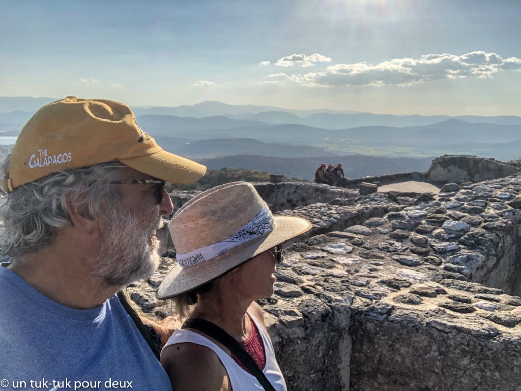 Quant à l’ancienne citée fortifiée, immense, bien conservée et restaurée, elle compte entre autres, plusieurs pyramides, deux terrains de belotes et un observatoire astronomique. Ajoutons à cela la vue des alentours à couper le souffle et c’est la formule parfaite pour un site vraiment superbe en plus d’y être une fois de plus à toute fin, seuls. Il s’y dégage une belle atmosphère. Nous prenons notre temps, car on s’y sent très bien. Et nous comprenons pourquoi il est classé au patrimoine mondial de l’UNESCO. Bref, tant les ruines que le musée valent le détour.