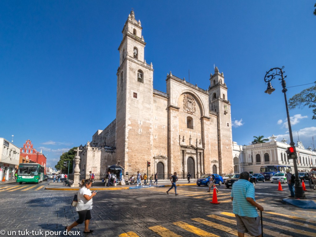 Ensuite, nous prenons la direction du réputé centre historique de Mérida que nous avons très hâte de découvrir. Il y a bien quelques endroits sur iOverlander pour stationner un VR de 25 pieds, mais ils sont occupés. On trouve finalement quelque chose, mais les nerfs de tous sont à vif. Après un excellent repas sur une terrasse, nous décantons un peu et profitons du bon temps, mais comme l’heure avance, nous visitons rapidement la place de l’indépendance et ses environs. On se promet cependant d’y revenir.