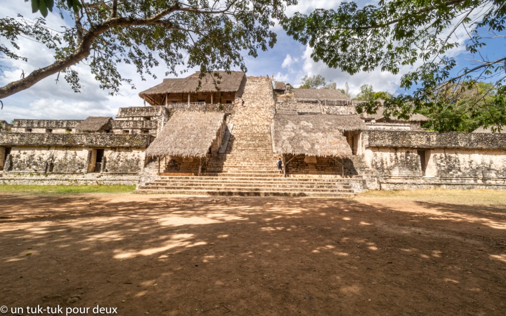 Comme mise en bouche pour notre première journée, nous nous rendons à la cité maya Ek’ Balam située à 30 km au nord de la ville de Valladolid. Ek’ Balam qui signifie « Jaguar noir » dans la langue maya aurait été occupée pendant un millier d’années de 600 av. J.-C. jusqu’en 1600 de notre ère. Le site impressionnant compte une quarantaine de bâtiments, dont entre autres un Palais Oval, deux palais Jumeaux, bien sûr, un jeu de balles et une pyramide. D’ailleurs, c’est l’une des seules du Mexique où il est encore permis de monter. Et croyez-nous, c’est très haut et à pic. En somme, vraiment agréable à visiter d’autant plus qu’il y a peu de touristes.