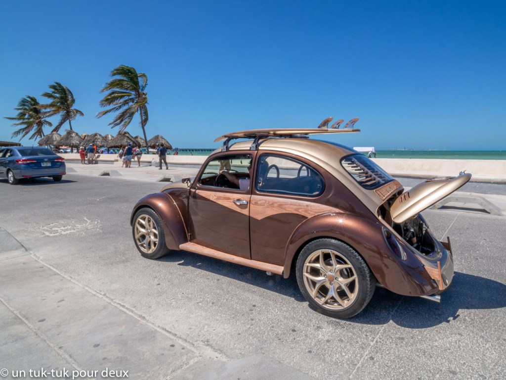 Nous quittons donc notre magnifique réserve naturelle de Rio Lagartos en direction de la capitale du Yucatàn, la ville de Mérida où nous nous installons dans sa banlieue sur la côte, plus précisément à Progreso. Nous avons loué pour sept nuits une jolie maison située sur le bord de l’océan avec piscine et tonnelle directement sur la plage, que nous n’utiliserons malheureusement pas à cause des forts vents. Mais bon, le spot nous convient parfaitement.