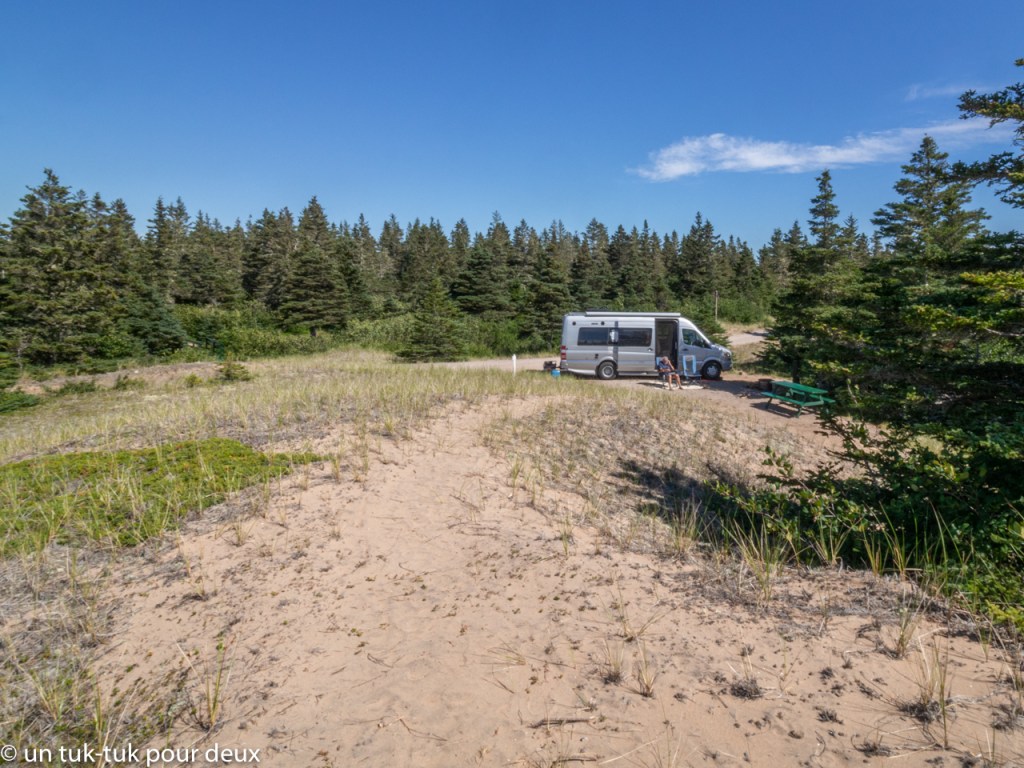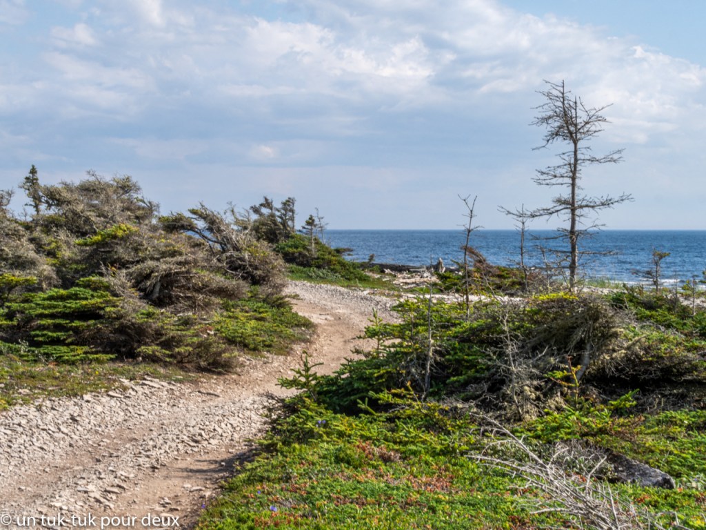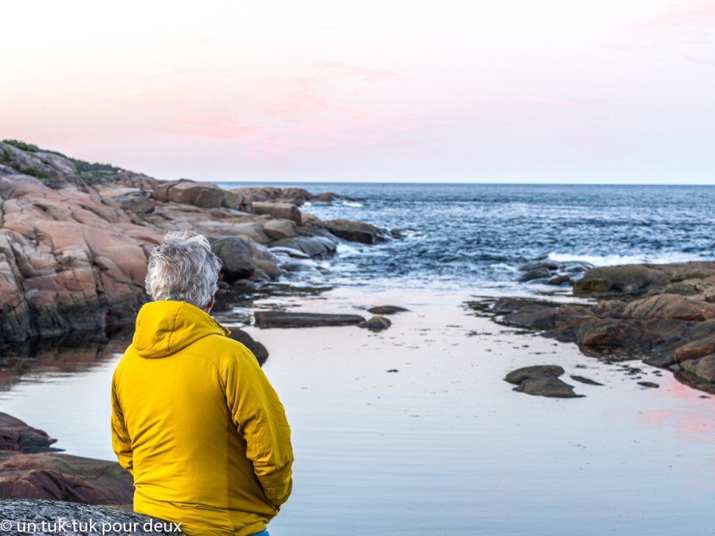 C’est enchantés après cette extraordinaire journée que nous regagnons notre « Paradis marin » pour une deuxième nuit. Avant de reprendre la route le lendemain, une petite randonnée (1,5 km) s’impose sur les crans pour nous rendre au Centre d’interprétation et d’observation de Cap-de-Bon-Désir. Le centre est fermé à cause de la COVID, mais un agent de Parcs Canada sur place peut répondre aux questions des visiteurs. C’est l’endroit idéal pour l’observation des mammifères marins tout en ayant les deux pieds sur terre, bien qu’en ce qui nous concerne, c’est encore mieux au camping. Pour les gens qui n’ont pas accès au rivage, c’est là qu’il faut se rendre.