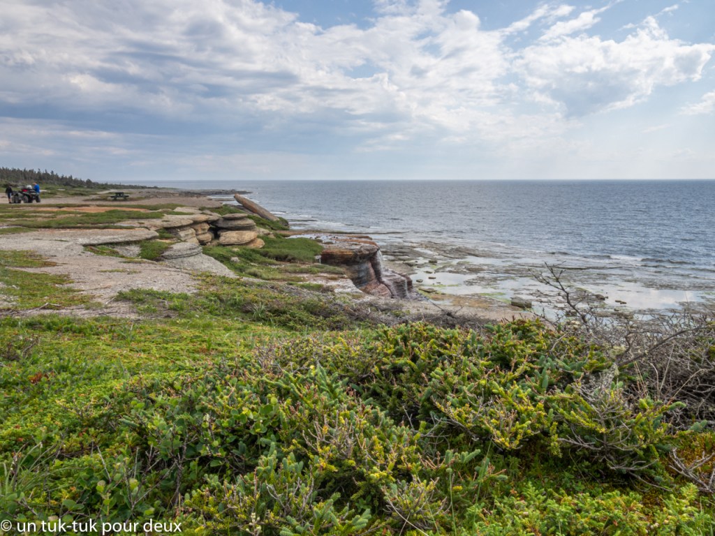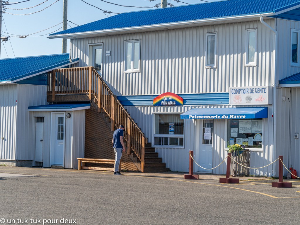Nous poursuivons notre retour vers l’ouest avec un second arrêt à Havre-Saint-Pierre (75 km) pour les pleins et les vidanges du tuk-tuk. Nous en profiterons pour déguster un club-sandwich au homard (qui, malheureusement, nous déçoit beaucoup) au restaurant La Promenade sur la rue principale en face de la mer et pour trouver un petit souvenir à la Place des artisans fermée lors de notre premier passage.