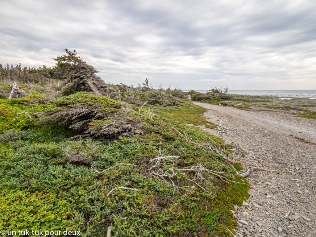 Le village de Magpie 75 km plus loin constitue notre prochaine étape. Nous nous installons le long de la voie menant au quai après avoir arpenté le joli petit village construit loin des règles urbanistiques usuelles. Des petites maisons coquettes, avec de grands terrains, pas de clôtures et des devantures pas toujours en fonction d’une logique. C’est un spot vraiment fabuleux avec un observatoire et un sentier de randonnée infini sur le cap avec vue sur le Golfe et où il est plus qu’agréable de marcher.