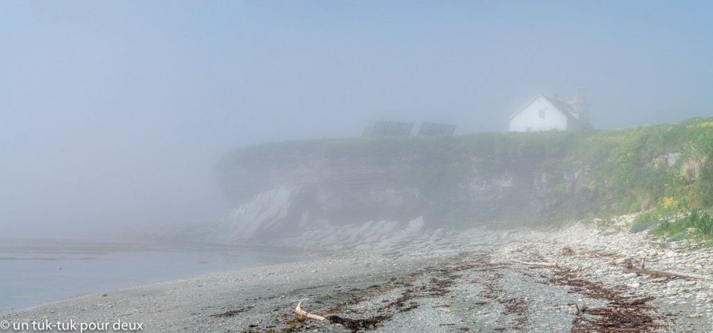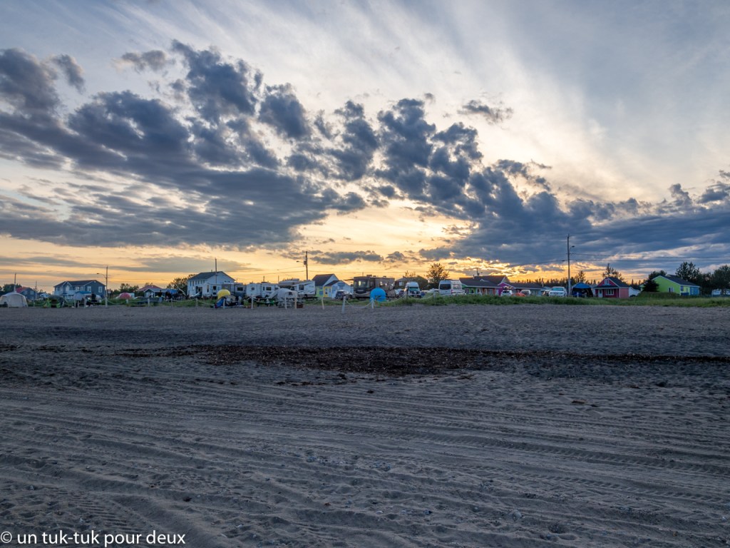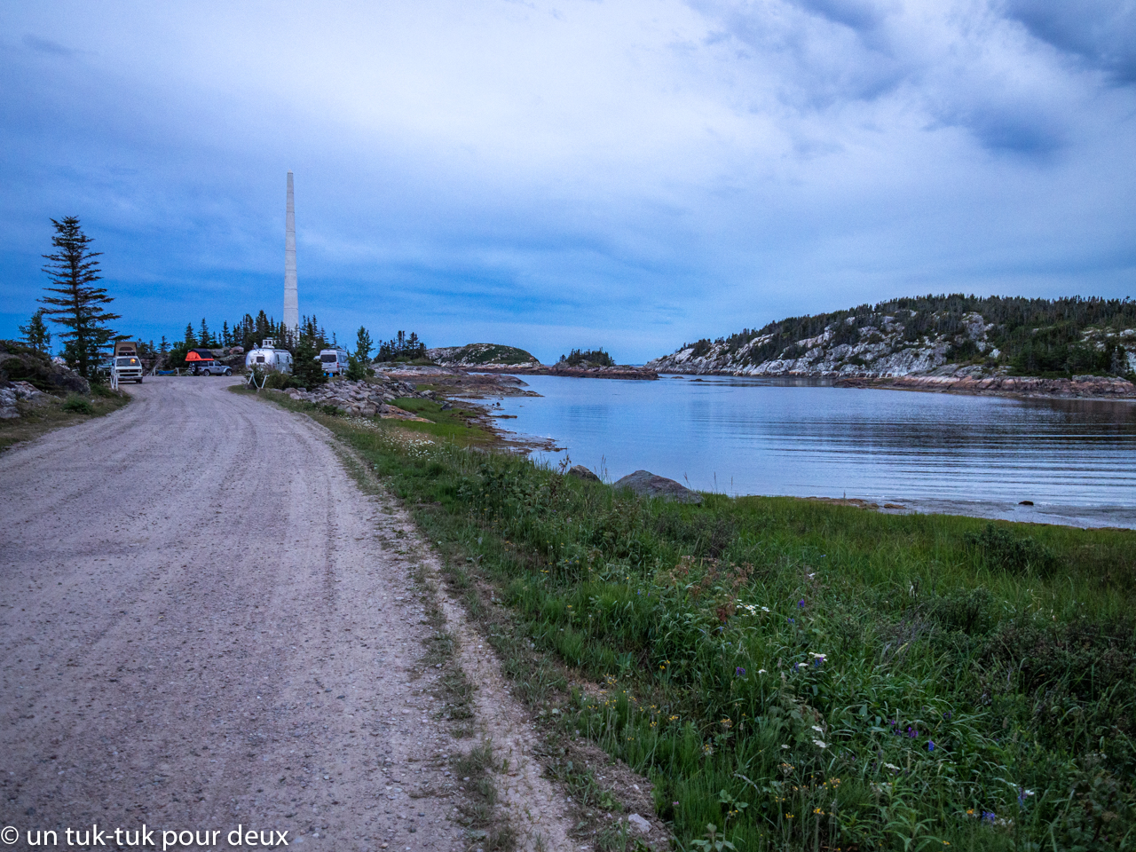 Prochain arrêt, Pointe-des-Monts. Aucune disponibilité côté camping. Alors, après avoir explorer les lieux aux environs du phare nous allons ensuite nous installer aux abords de la route d’accès à la pointe pour la nuit. Ce n’est pas l’idéal et il n’y a pas de vue stupéfiante sur le fleuve, mais au moins c’est plat et tranquille.
