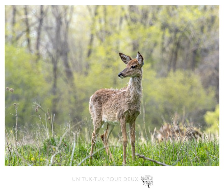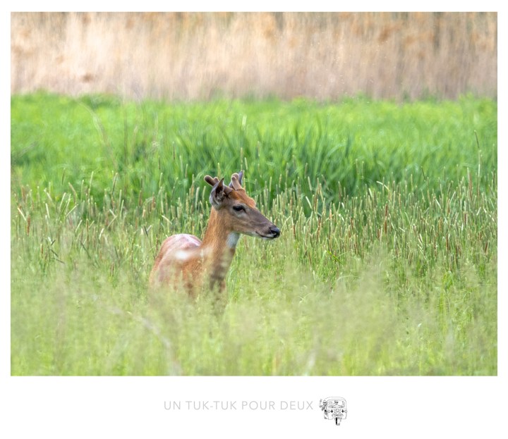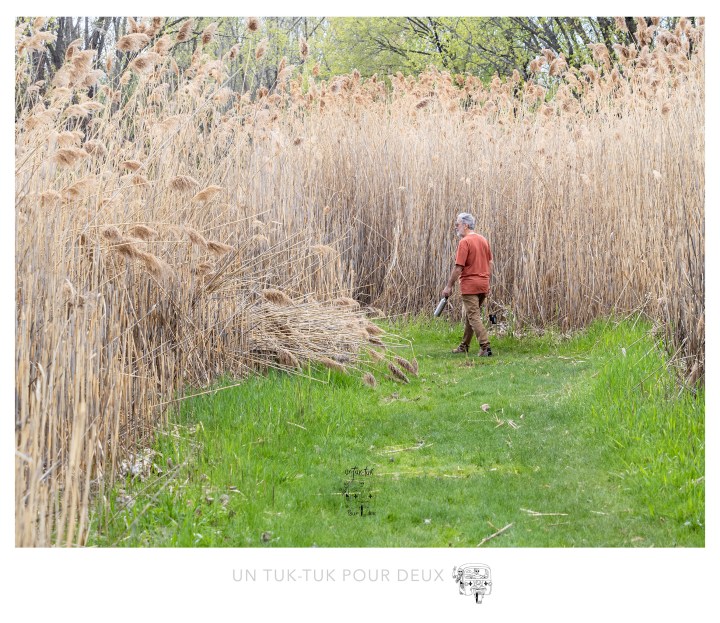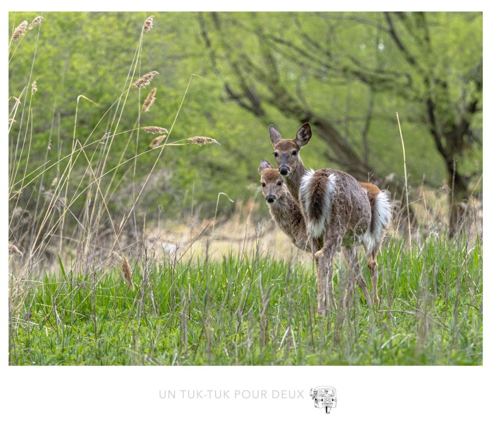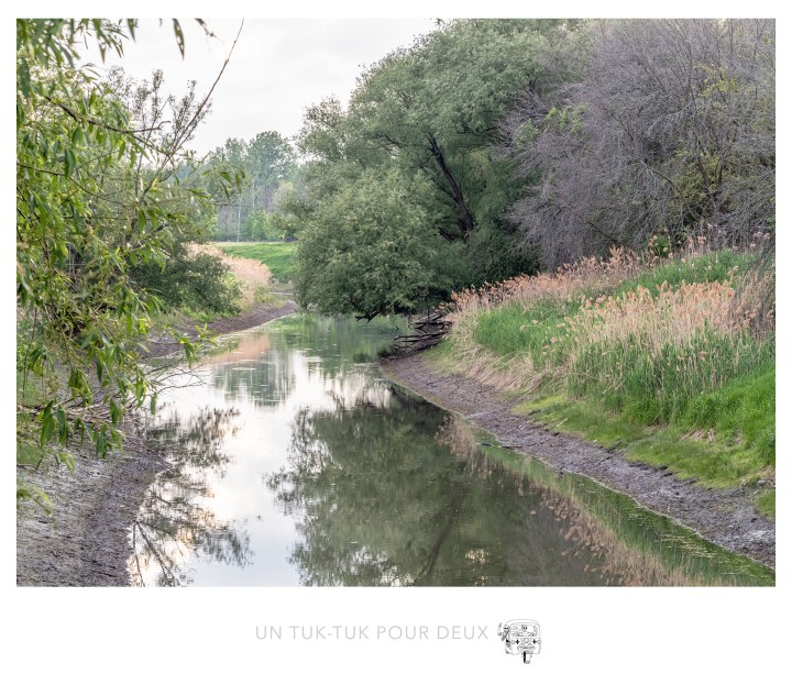 Pour l’inauguration de notre nouveau tuk-tuk, nous avons décidé de joindre l’utile à l’agréable. En cette période de restrictions sanitaires drastiques, comme vous tous nous nous sommes abstenus de voir notre monde et, alors que les mesures s’allègent, nous avions un urgent besoin de rendre visite à nos enfants qui habitent à Montréal. Mais pourquoi vous parle-t-on de ça? C’est parce que nous avons découvert le Parc national des îles de Boucherville. Un peu tardivement pour des gens qui ont résidé sur la Rive-Sud de Montréal pendant si longtemps, vous direz-vous! Bien sûr qu’on le connaissait de réputation! Dominique y avait même déjà joué au golf, mais nous n’avions jamais profité des sentiers et de la faune (dont un très grand nombre de cerfs) de ce magnifique parc si près de la ville. La campagne en ville!
