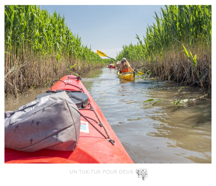 Le circuit proposé pour le kayak est vraiment beau hormis les premiers coups de rame où il faut se faufiler parmi les dizaines de bateaux de plaisance qui y sont amarrés et dont les occupants festoient plus que permis. (La police aurait eu bien du boulot à donner des contraventions cette journée-là).