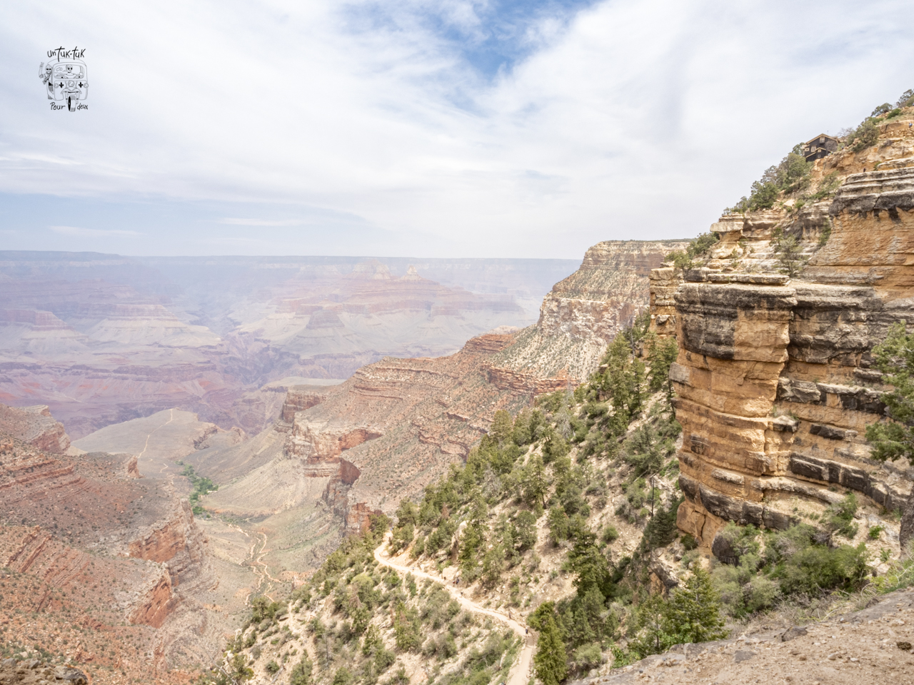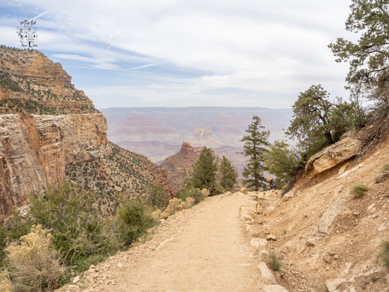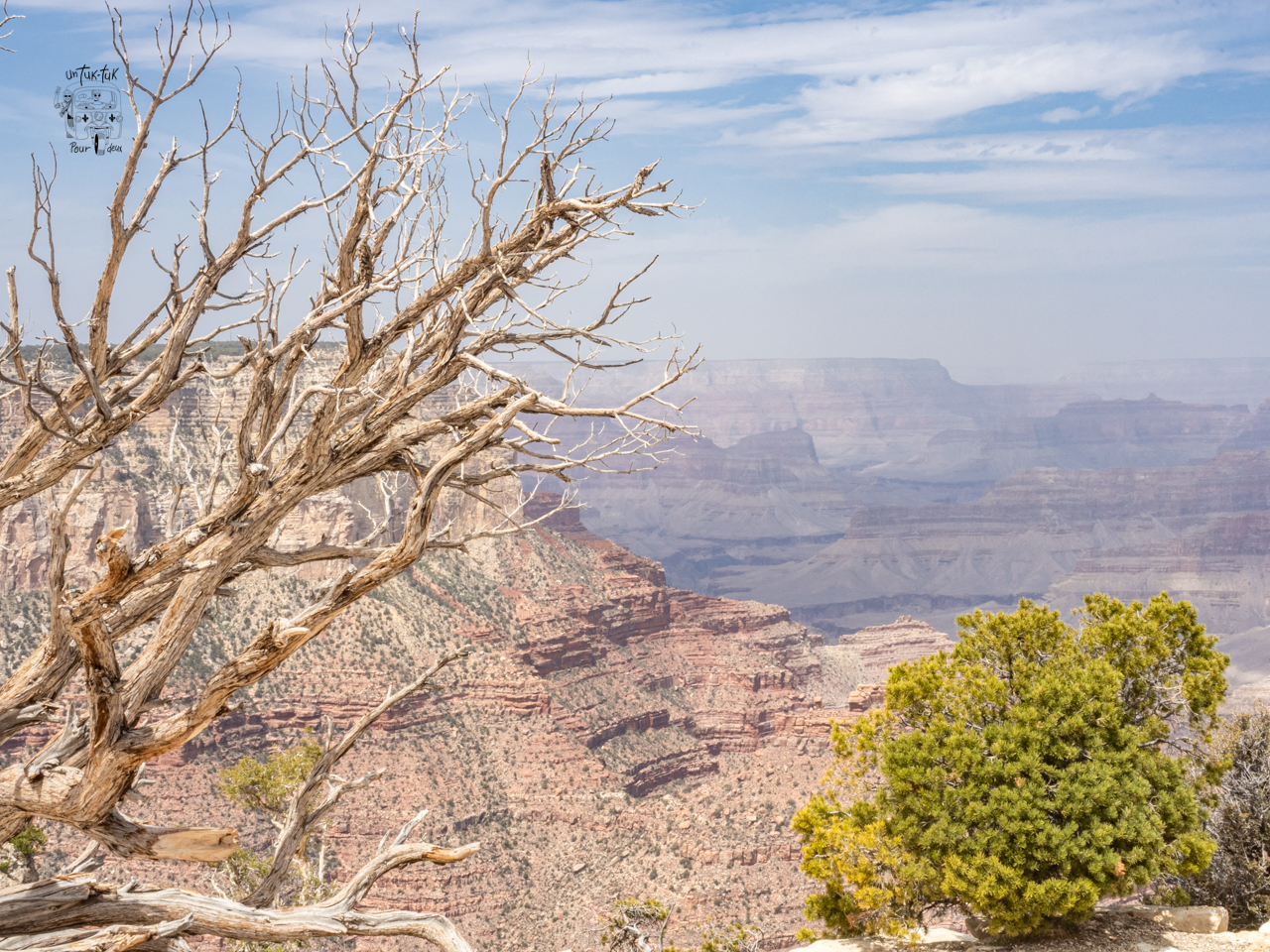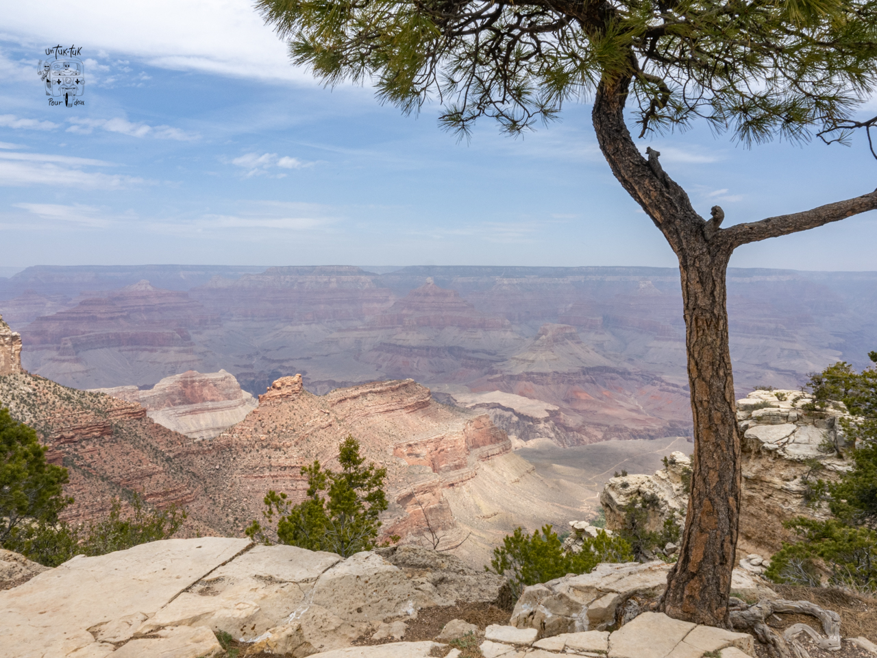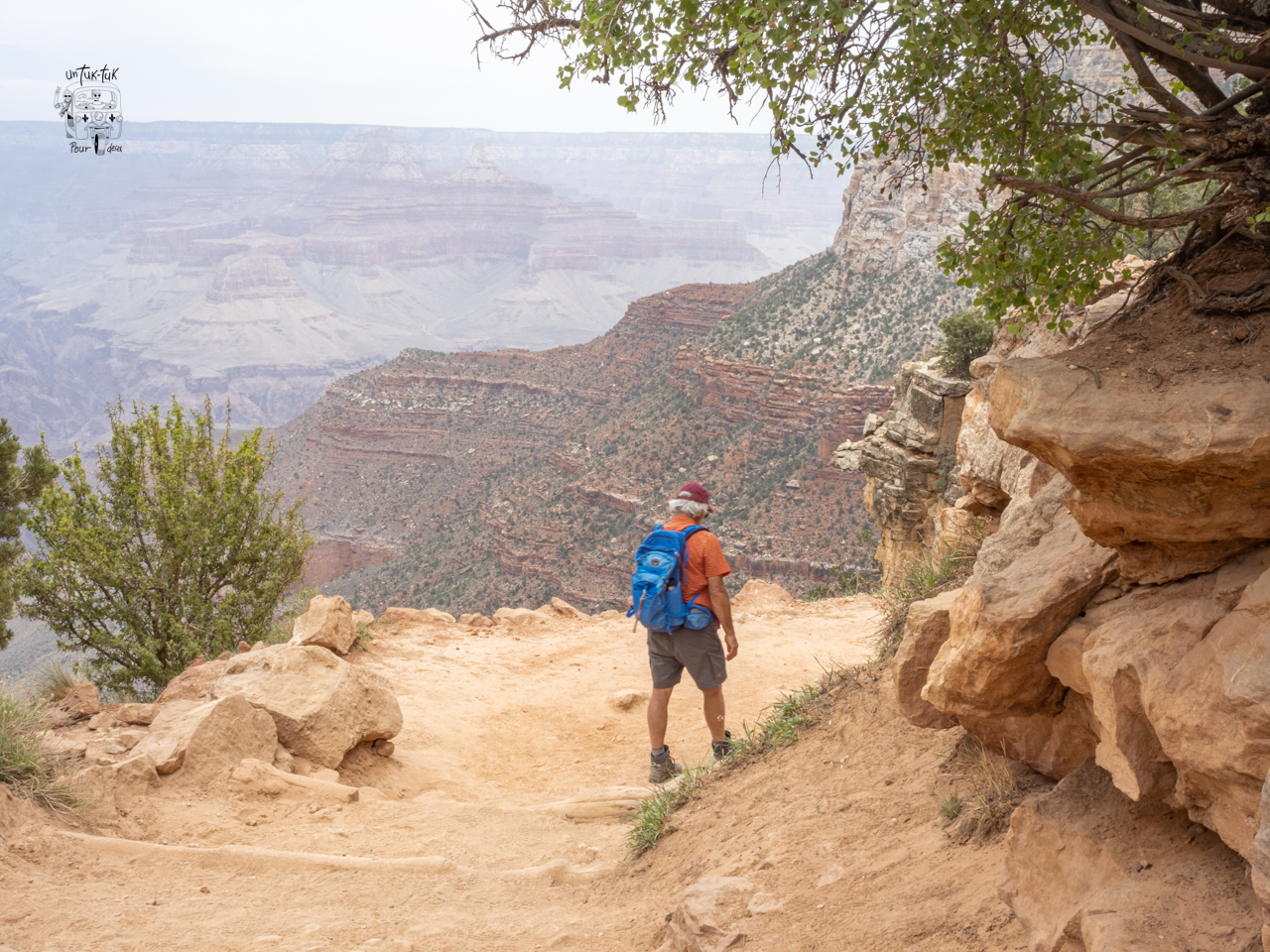 Nous nous rendons ensuite au Mather’s Point, l’un des plus beaux points de vue derrière le Visitor Center avant d’entreprendre une marche longue de cinq kilomètres le long du canyon en nous arrêtant ici et là pour admirer le panorama saisissant. C’est unique et encore une fois, la nature nous présente sa force et sa puissance!