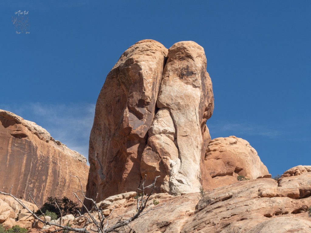 Beaucoup de rochers dans les parcs ont été baptisés (à raison) en fonction de leur ressemblance avec un objet, un animal, un humain, etc. L’oeil de la photographe en a capté quelques-uns oubliés. Y voyez-vous quelque chose?