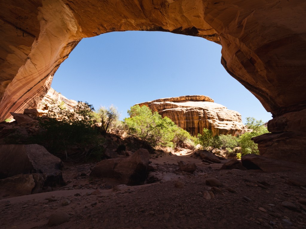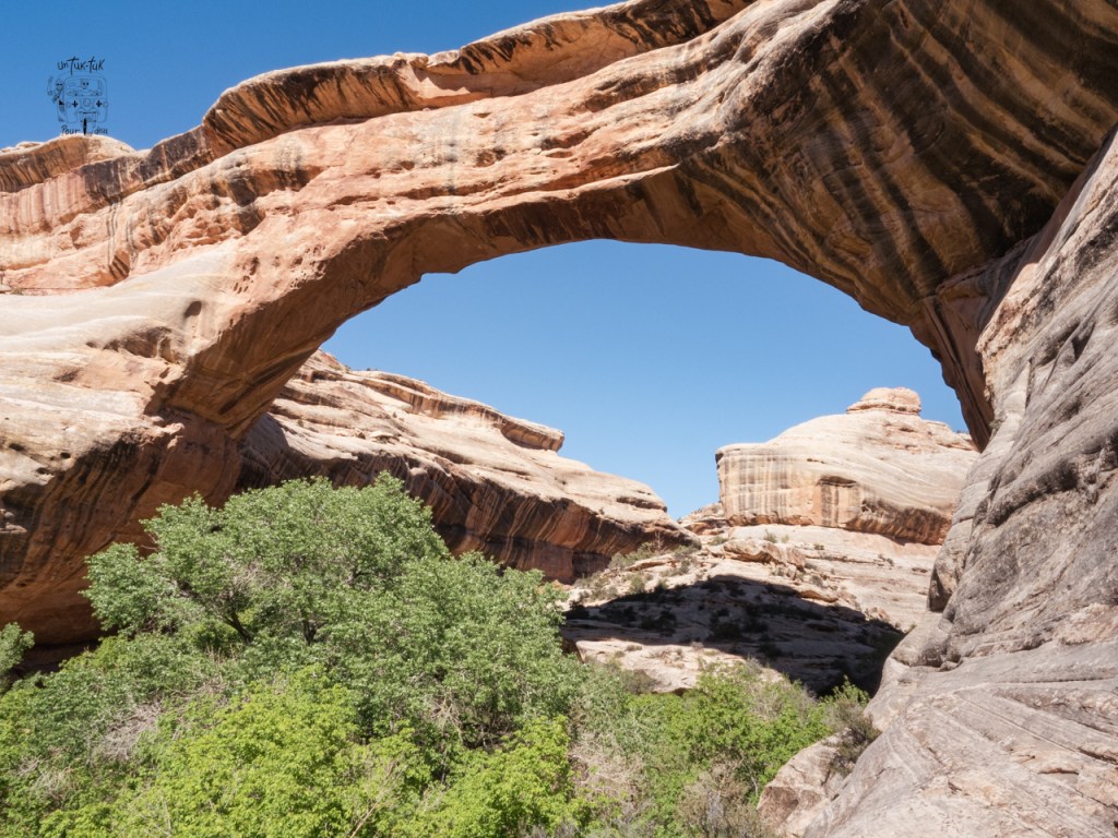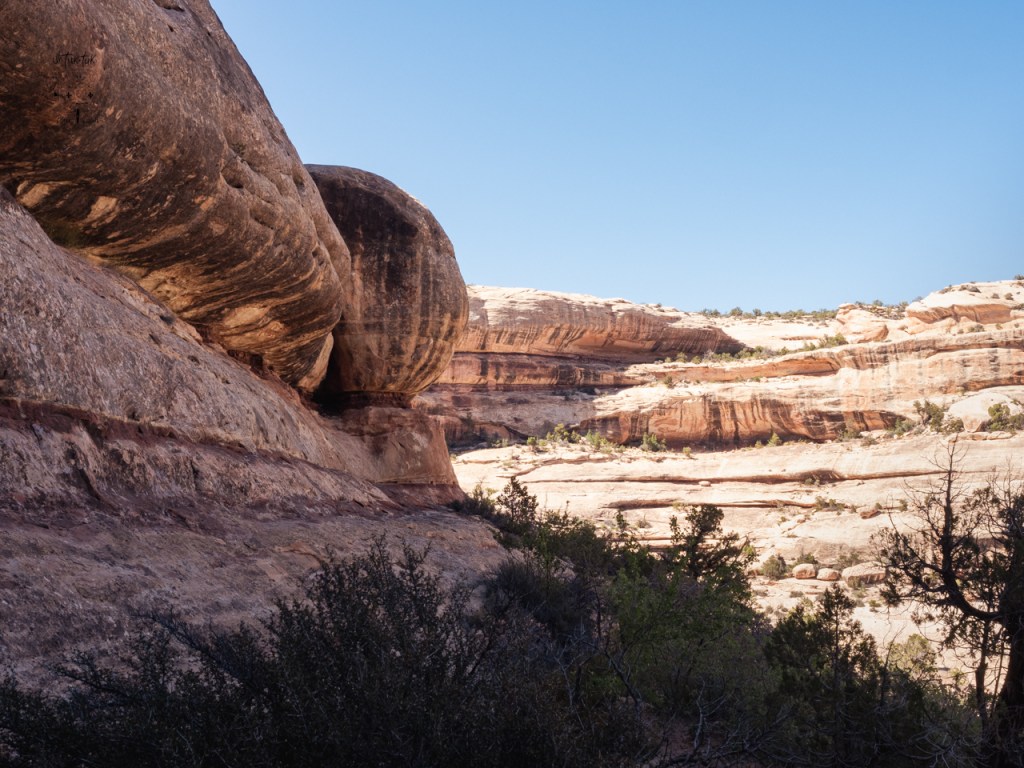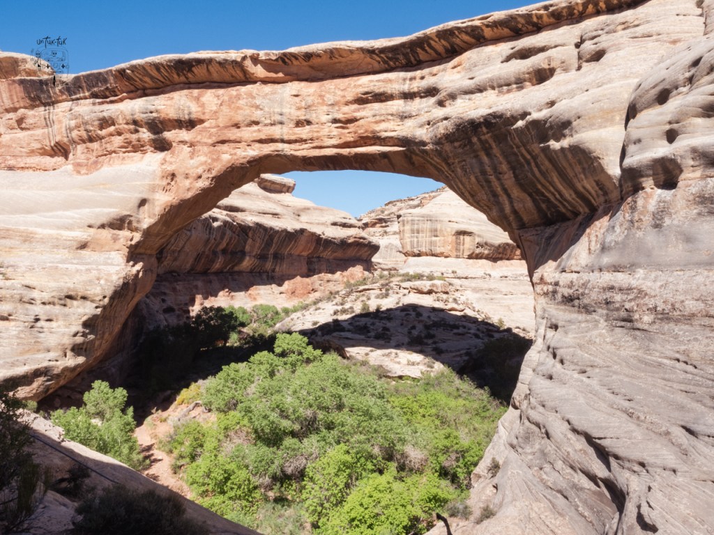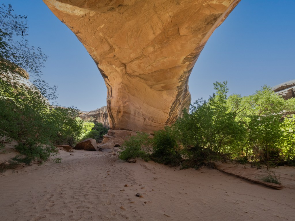 Mais c’est d’abord le cadet du parc que nous visitons, le Kachina Bridge. Il doit son rang dans la famille du parc à l’épaisseur de sa travée. La relative petite taille de son ouverture et son orientation rendent difficile son observation du point de vue.