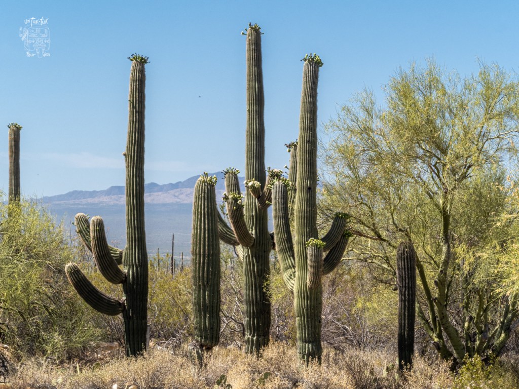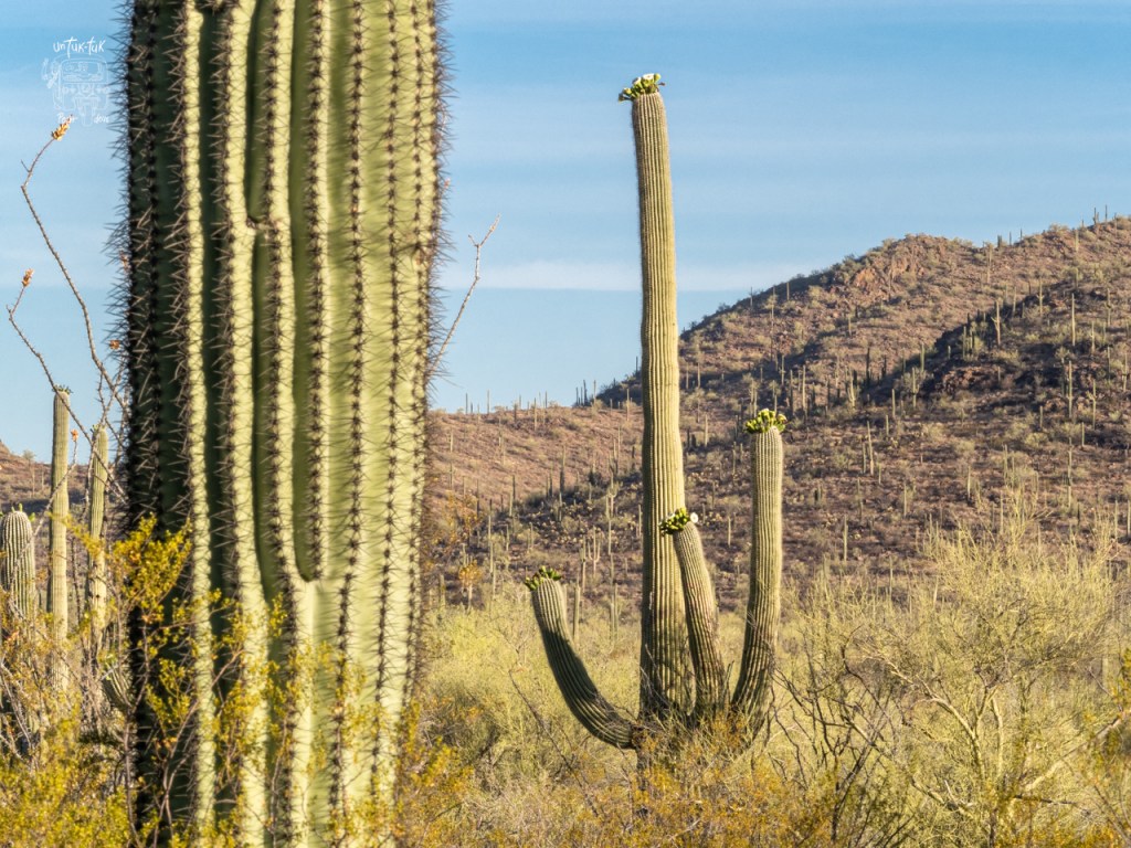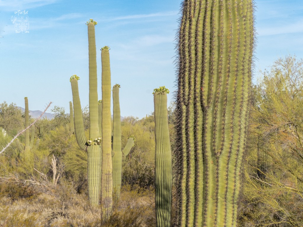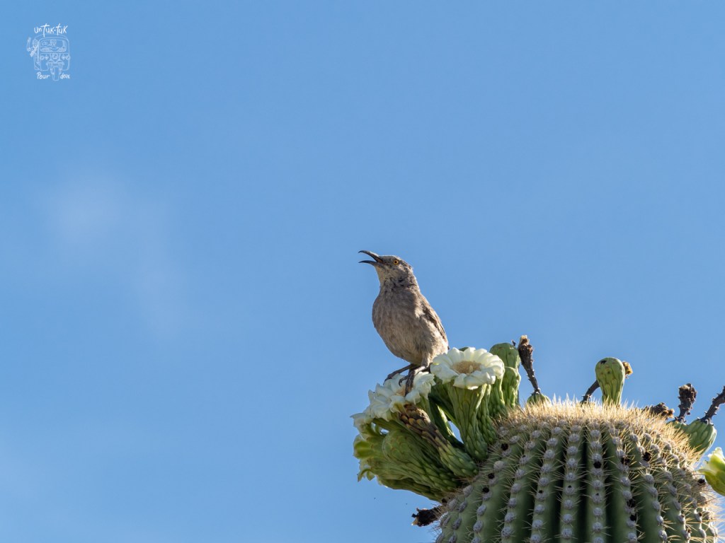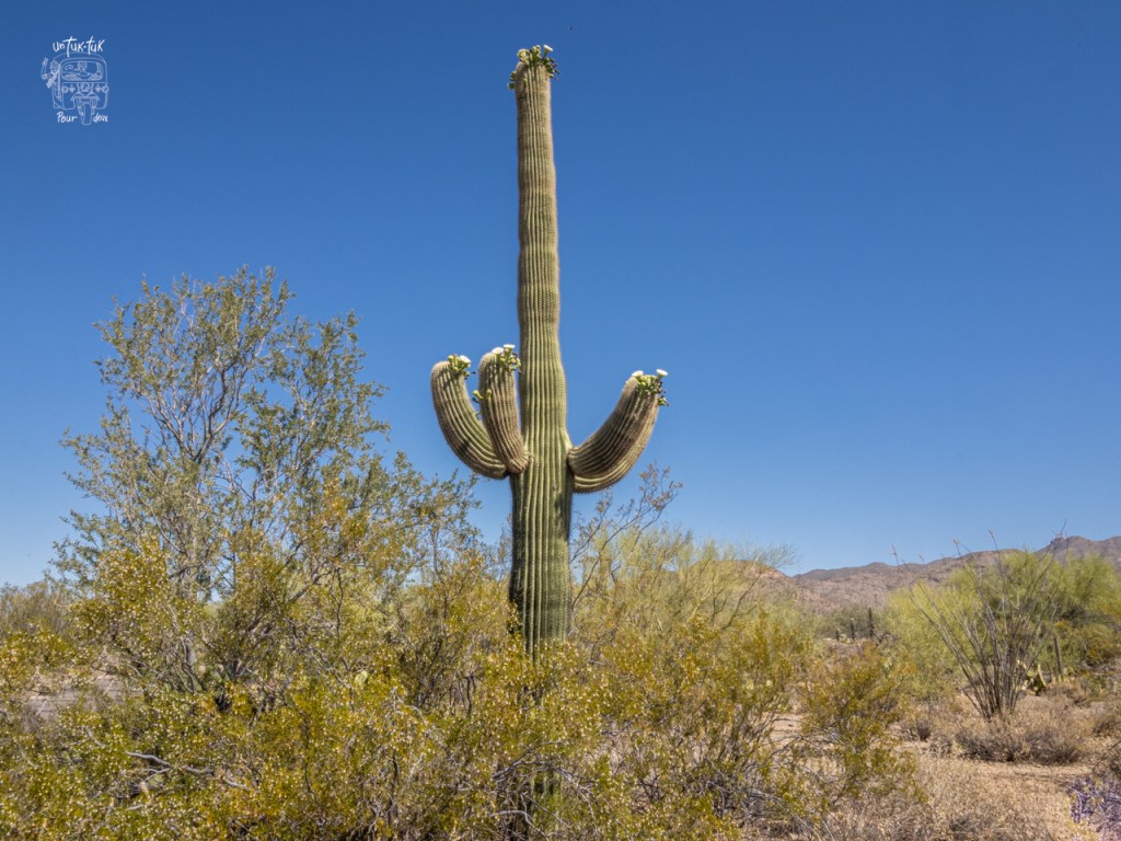 Dans notre billet sur le Saguaro National Park, situé près de Tucson en Arizona, que nous avons visité à deux reprises vers la fin avril, nous avions été déçus de ne pas voir autant de fleurs que nous l’espérions sur la tête des cactus. Et bien devinez! Têtes de cochon que nous sommes, nous décidons de rendre vrai l’adage «Jamais deux sans trois» en y allant à nouveau quelques jours. Pour voir ces fameux cactus arborant leurs élégantes couronnes blanches bien sûr, mais aussi pour se poser le temps de refaire le plein d’énergie. Un léger détour de près de 850 km. Quand on aime un endroit, on l’aime ;-).