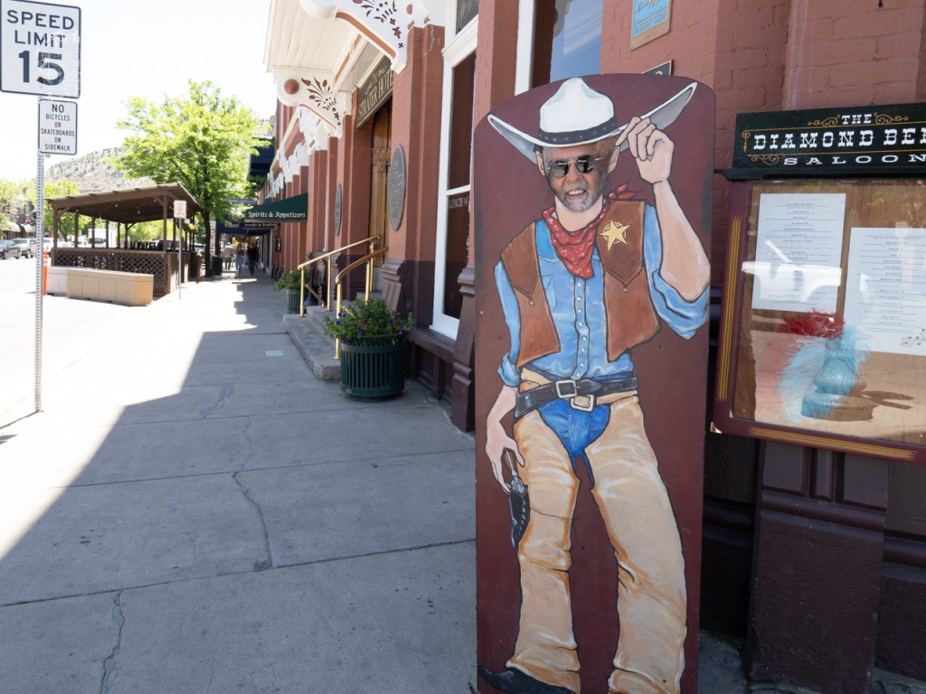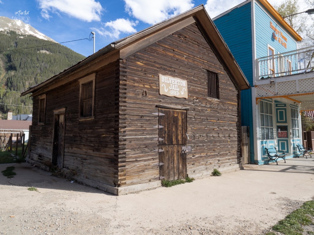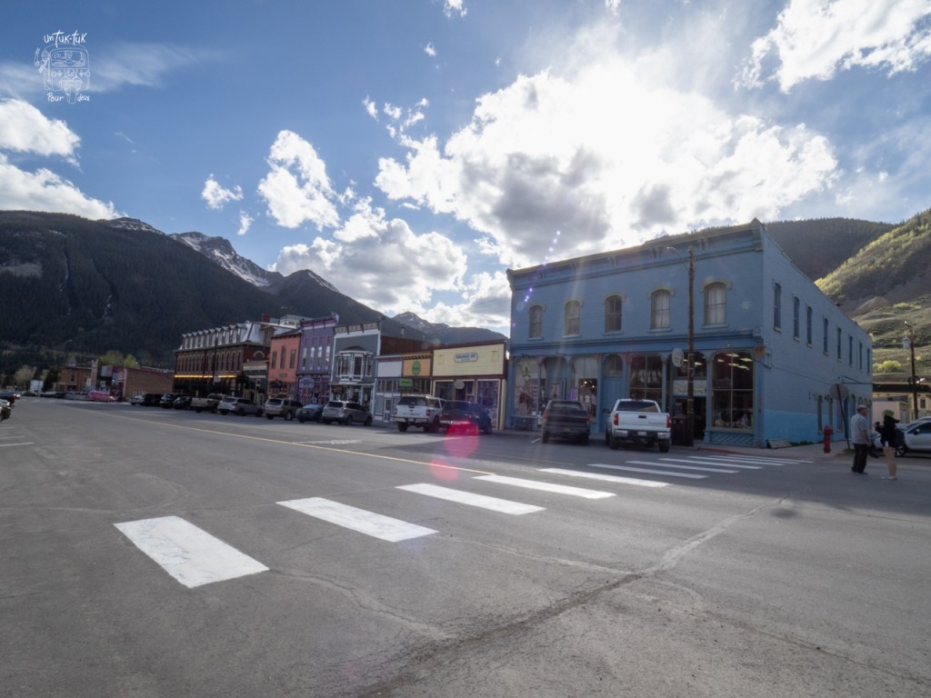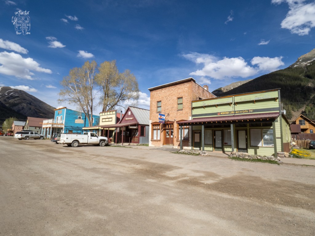 Nous repartons donc dans la vallée par la 550 jusqu’à Silverton, une ancienne ville minière d’environ 600 habitants… mais à l’époque de la ruée vers les mines d’or et d’argent (1880), Silverton comptait 2000 résidants, 400 immeubles et… 29 saloons! 🍺🤠 Hi Ha! Très bien mis en valeur, les différents établissements sont transformés en boutique, hôtels, etc. et s’étalonnent sur quelques petites rues. Un décor plus que réaliste. Un vrai farwest digne d’Hollywood. D’ailleurs plusieurs westerns y ont été tournés à ce qu’il paraît. De plus, il semblerait que tous les samedis en fin de journée il y ait une fusillade entre deux cow-boys sortant du saloon. Le spectacle a l’air tellement vrai qu’on se laisse prendre au jeu. Ça tombe bien, c’est samedi! Malheureusement, nous ne savons pas pourquoi, mais il n’a pas lieu, on ne peut donc en juger. Pas grave, la visite en vaut la chandelle.