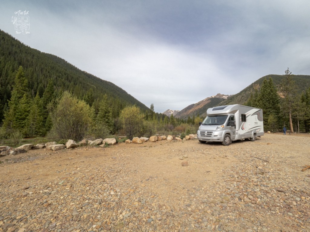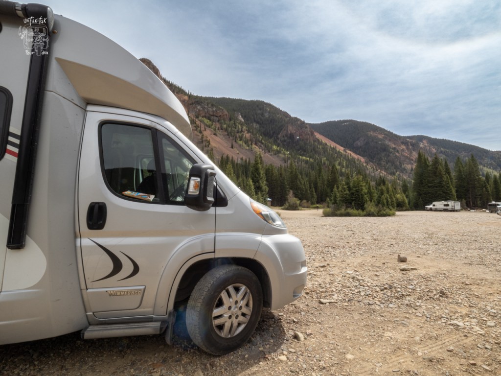 Colorado, Silverton, South Mineral Campground — Gratuit, sur iOverlander N37.82013, W 107.71010 à 3000m d’altitude. Superbe spot longeant la rivière Menirale Crrek et dans une magnifique forêt de pins immenses. Beaucoup d’emplacements. Bien situé à seulement 5,5km au nord-oues de Silverton. Nous avons beaucoup aimé.