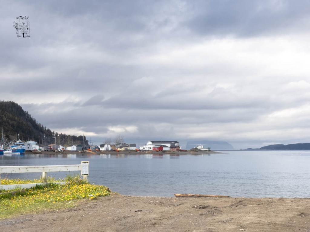 Il ne fait pas vraiment beau à notre arrivée et le parc n’est pas encore ouvert pour la saison. Pas de camping, mais il est possible d’emprunter les sentiers quand même. Donc, nous nous installons sur un espace près du quai dans le centre du village où on passe la nuit en souhaitant que le temps se dégage pour le lendemain. Bien sûr, puisque nous sommes là pour randonner sur l’un des sentiers les plus réputés de la région, le Cape Blow Me Down Trail. À notre réveil, la température est toujours moche, un sublime mélange de brume, de pluie et de froideur ! C’est de la schnoutte ! C’est clair qu’on n’y verra que dalle. Nous passons donc notre tour avec grand regret non sans nous promettre d’y revenir au retour, car pour l’instant nous ne pouvons confirmer qu’il méritent son nom.