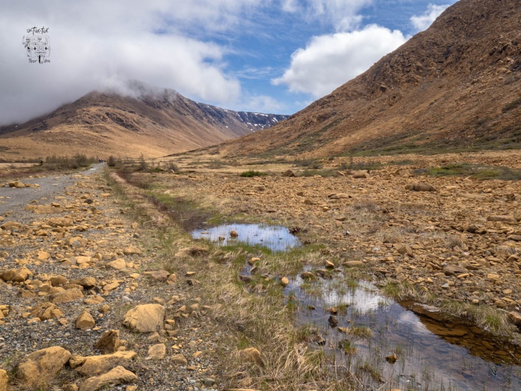 Nous nous dirigeons alors vers notre prochaine destination c’est-à-dire vers la partie sud du fameux Parc national du Gros-Morne, un autre 185 km vers le nord où un majestueux orignal nous accueille. Malheureusement pas le temps de sortir l’appareil photo. Au Centre des découvertes de Parcs Canada (avec une préposée qui parle français comme dans TOUS les parcs nationaux au Canada, toujours surprenant !), on nous recommande les 2 – 3 plus beaux sentiers de randonnée de cette section du parc. Aussitôt dit, compte tenu de l’heure avancée de la journée, on s’offre le sentier des Tablelands. C’est un petit 4 km aller-retour dans un décor dépouillé et aride de couleur ocre façonné par la nature pendant 500 millions d’années. Plus spécifiquement, « c’est la tectonique des plaques qui a fait remonter à la surface des roches normalement enfouies à plusieurs kilomètres sous l’océan. » On se croirait sur une autre planète. Nous avons su bien plus tard que le hors-piste y était permis. Bien dommage, car c’est assurément l’option que nous aurions choisie étant restés sur notre faim avec le petit sentier de bois.