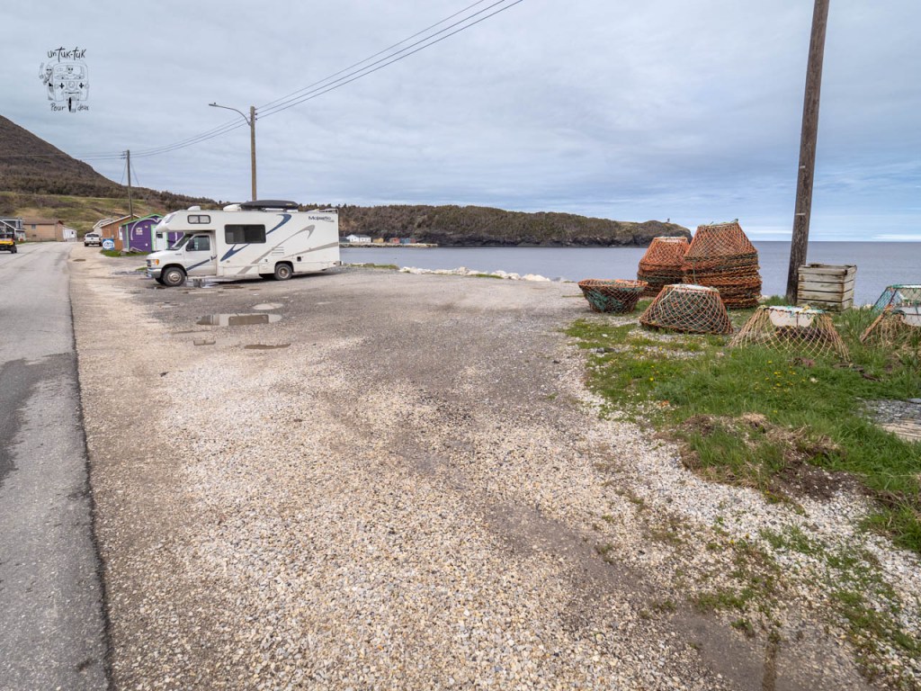 Parc national du Gros-Morne — Trout-River — sur iOverlander, stationnement face au B&B Ocean. Très beau petit village muni d’un board walk en bois et d’un sentier en haut du cap accessible via un pont. La vue sur le village y est très belle.