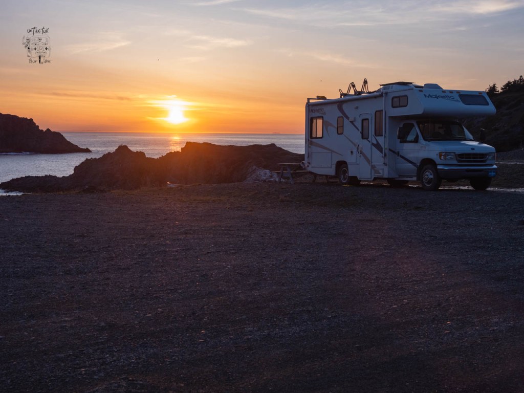 Twillingate — Top of Crow Head sur iOverlander. Le plus beau des bivouacs. 5 emplacements pour VR avec tables de pique-nique et pit à feu. Mais possible se stationner un peu en retrait. Superbe vue et magnifique coucher de soleil.