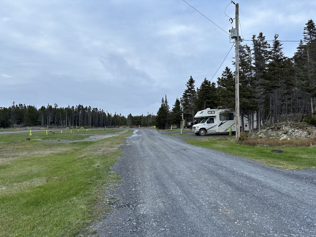 Twillingate — Camping Peyton’s Woods. 45 $ CAN (tax incl.) avec eau et électricité, sanidump. Douches et toilettes très propres. Buanderie. Une soixantaine d’emplacements, certains séparés par des arbres d’autres non. WiFi disponible, mais très faible, vaut mieux prendre la première place près du bureau d’accueil pour un meilleur signal.