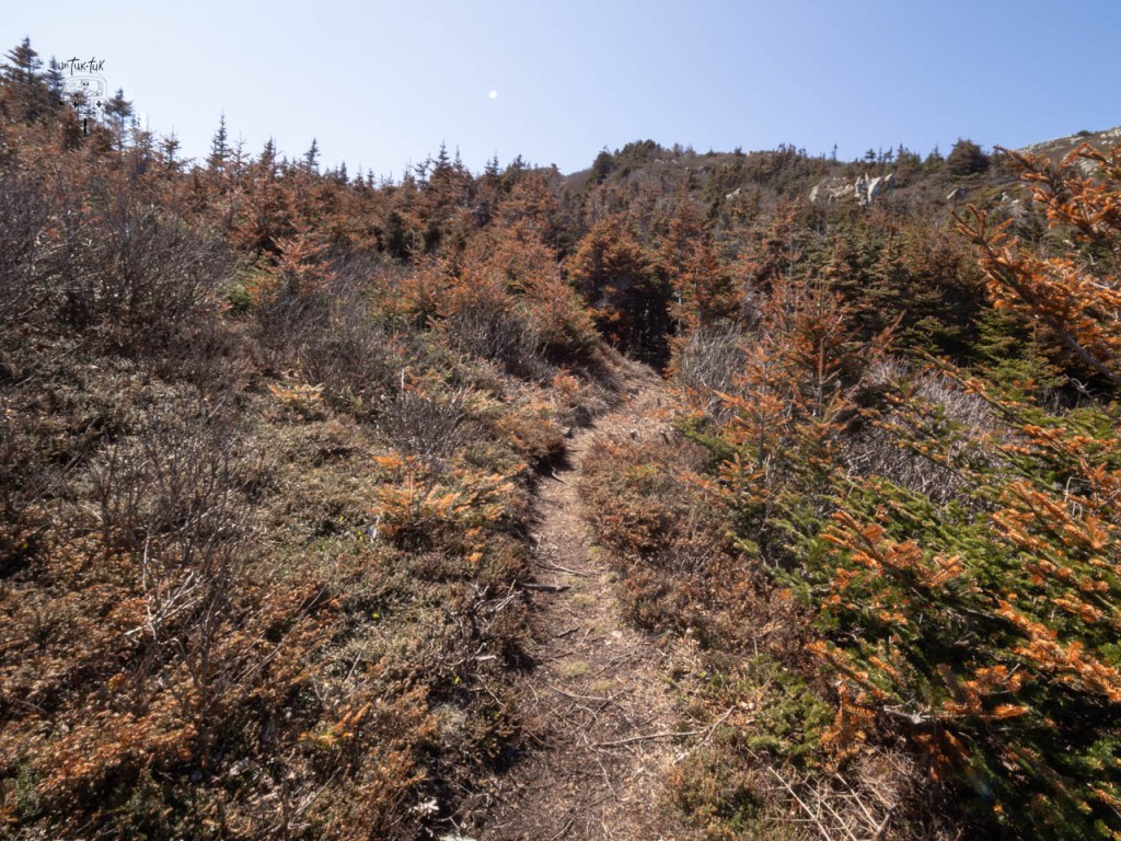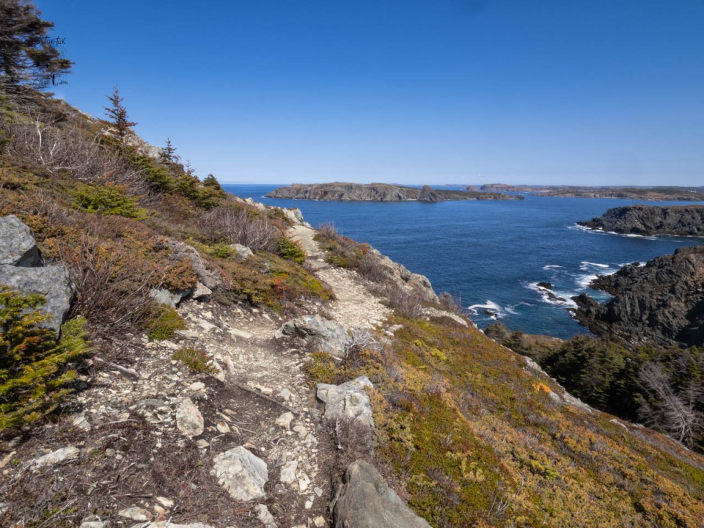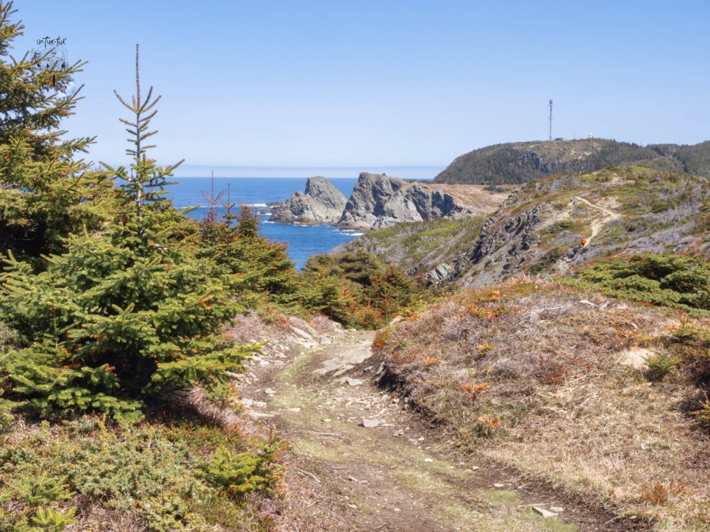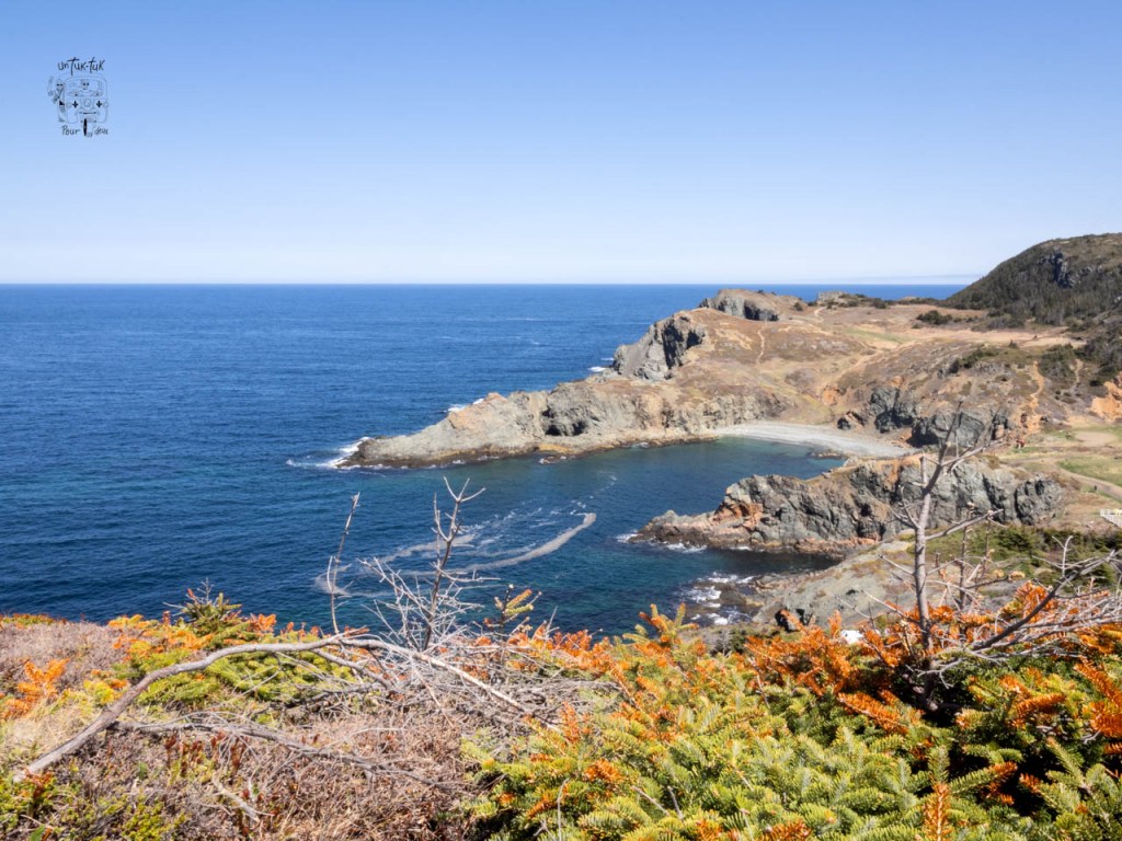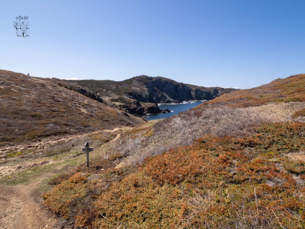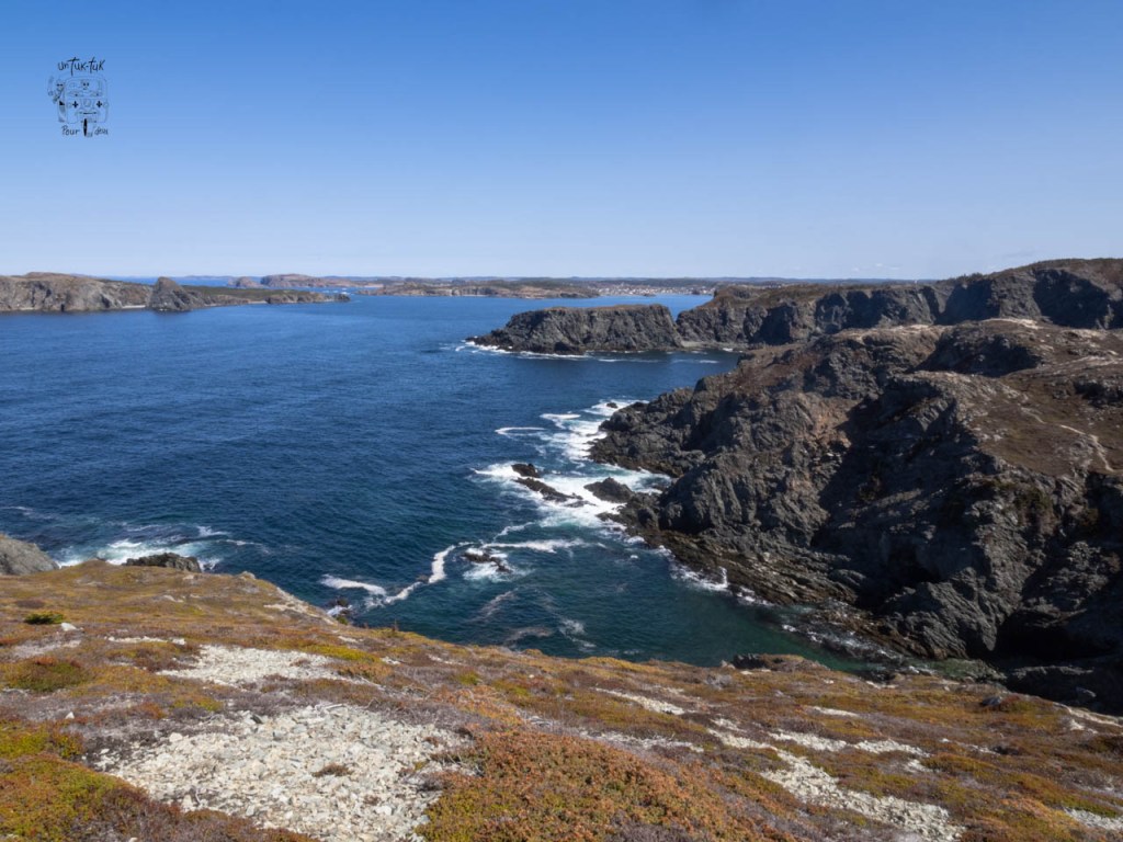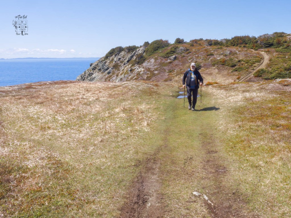 Encore une matinée de beau temps ! Il faut spécifier que l’île de Twillingate est très bien pourvue en sentiers de randonnée. Alors, profitons-en et allons nous aventurer dans une autre partie de l’île sur une boucle appelée Lower Little Harbour Trail, d’une longueur d’environ 5 km. Un autre plus qu’agréable sentier en partie dans le bois, mais principalement sur les caps. Décidément, Twillingate est en train de devenir notre chouchou.