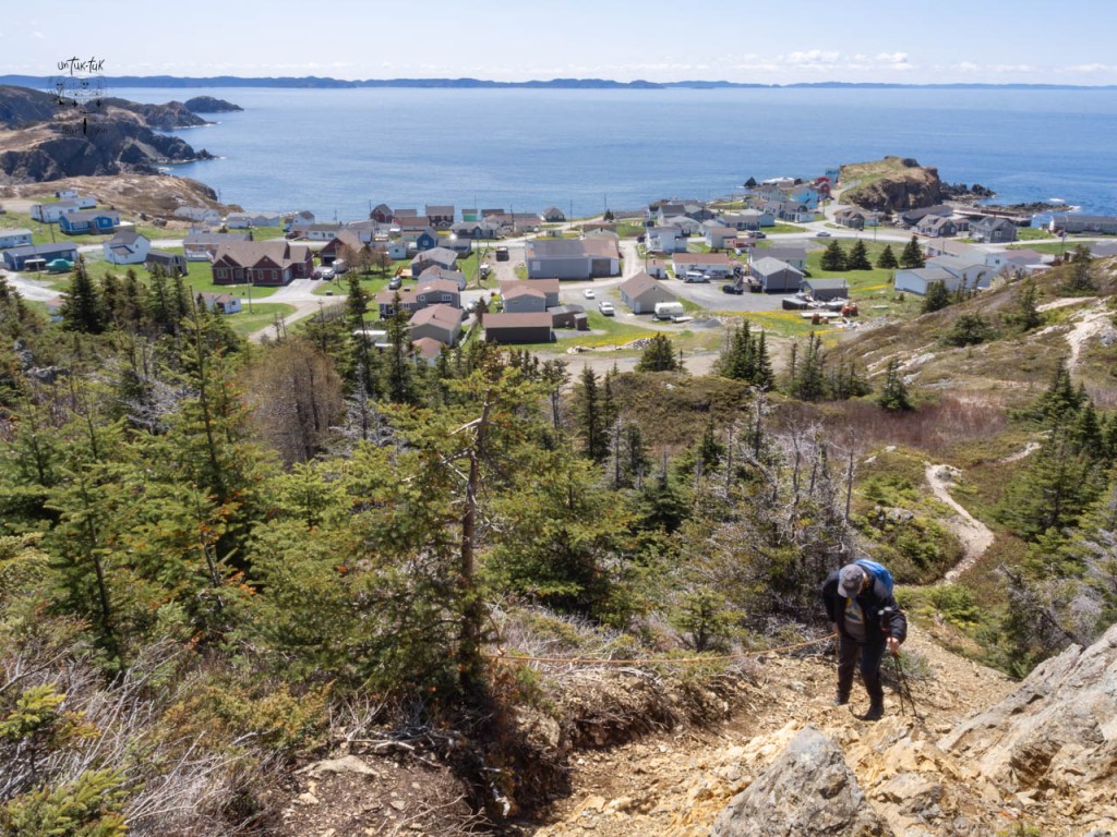 Bon, là c’est vrai, il fait beau et on se dépêche d’aller au phare de Twillingate appelé le Long Point Lighthouse avec l’intention d’aller marcher sur les caps. Les sentiers que nous entreprenons sont le Lower Head Trail et le Cuckhold’s Point Trail (ou Nanny Hole et Long Point Lighthouse sur All Trails) qui fait une grande boucle d’environ 14 km à partir du phare.