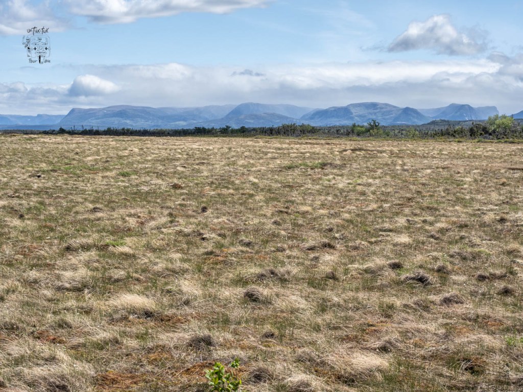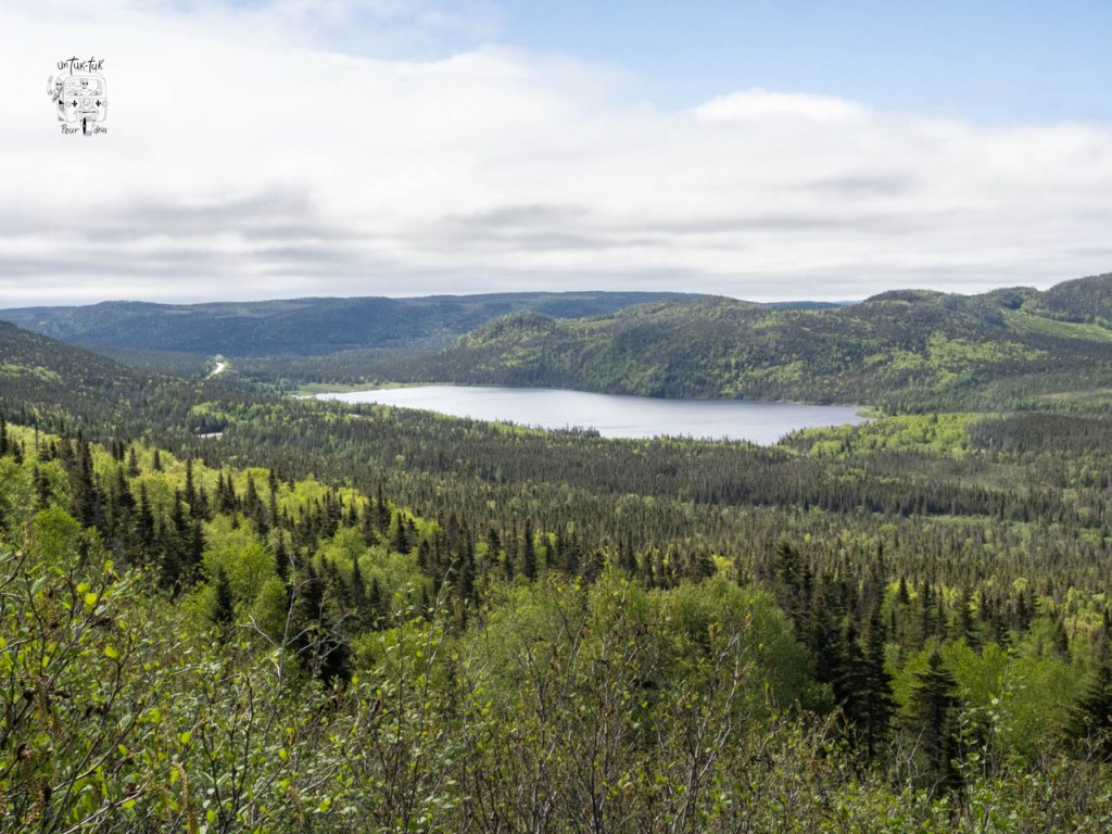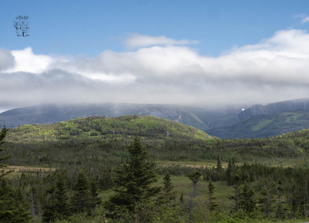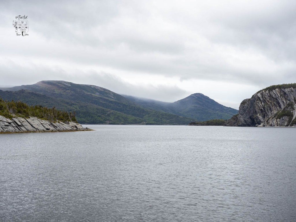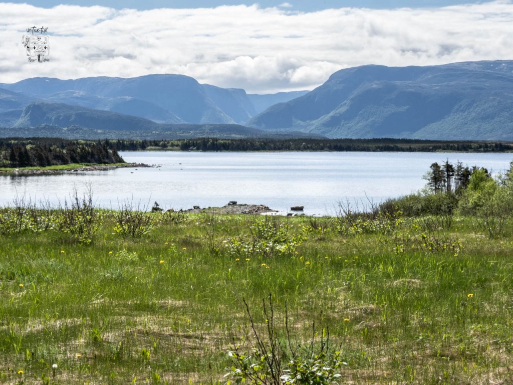 Nous arrivons dans la partie nord du Parc. Un petit arrêt au centre d’accueil pour prendre des informations sur les sentiers et sur la possibilité d’une croisière sur l’étang Western Brook, suivi d’un trek avec guide au bout du lac. Tsé, pour avoir le même point de vue que sur la photo du guide 🤩. À ce sujet, on nous dit que c’est la même compagnie privée qui organise les croisières et les randonnées, que ce n’est pas encore commencé et que ça se détaille quelque chose comme 400 $ CAN par jour par personne. Quoi ? Nous passons notre tour, mais sachez que la sortie d’une durée d’environ 8 heures comprend le 3 km du début, le bateau et le retour par le même chemin. Par ailleurs, on nous confirme également que le sentier du sommet du mont Gros-Morne (le plus spectaculaire) n’est pas ouvert aux randonneurs afin de permettre une meilleure nidification des oiseaux. Il sera accessible à partir de la fin juin, mais ça, nous le savions déjà !