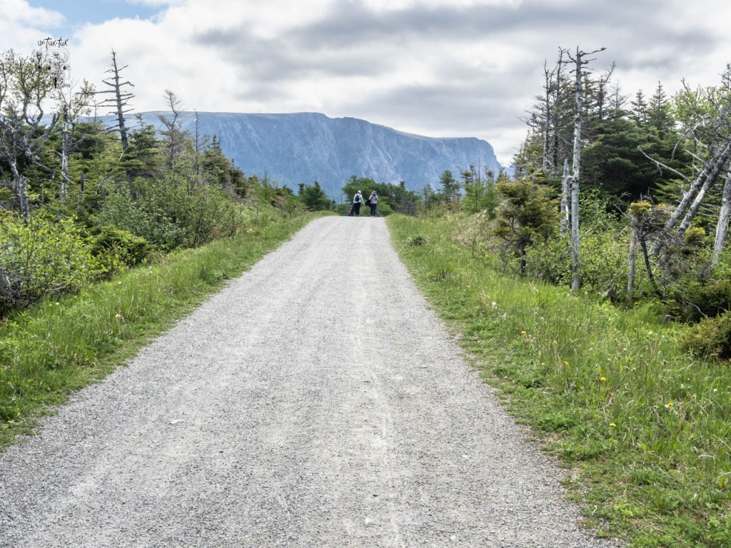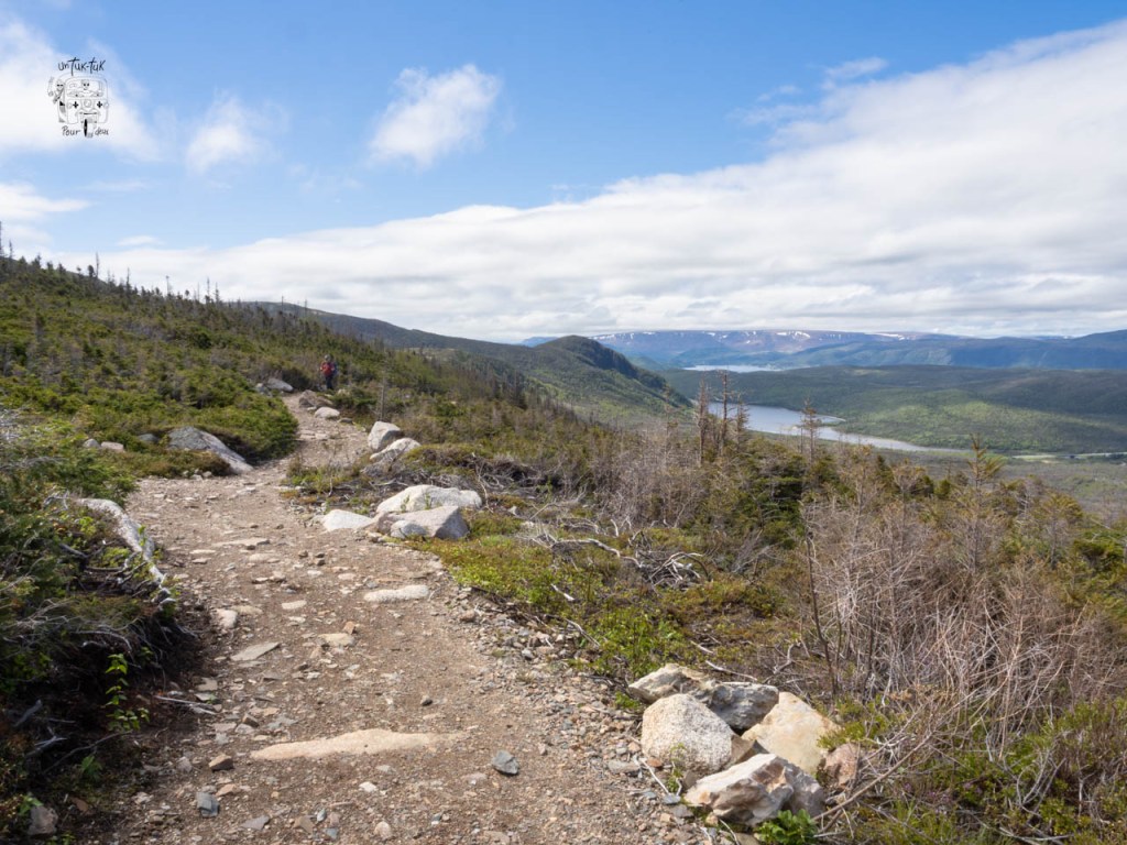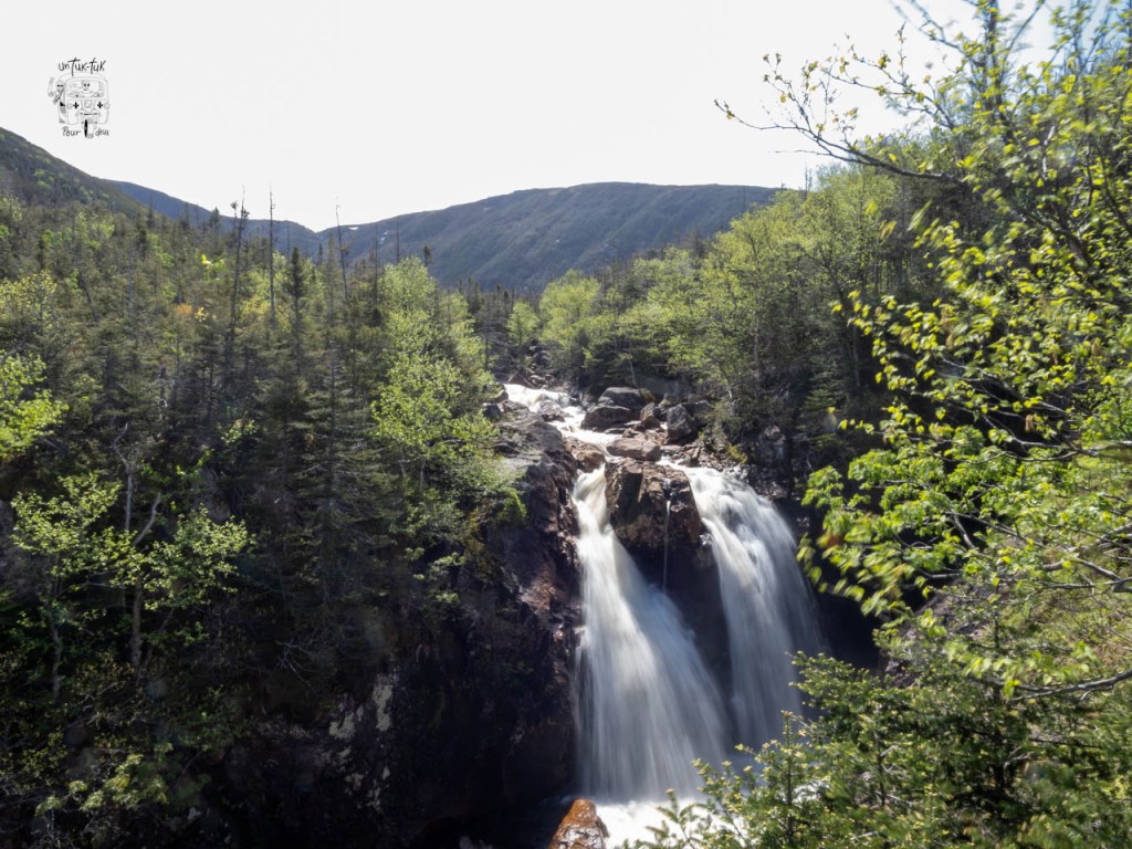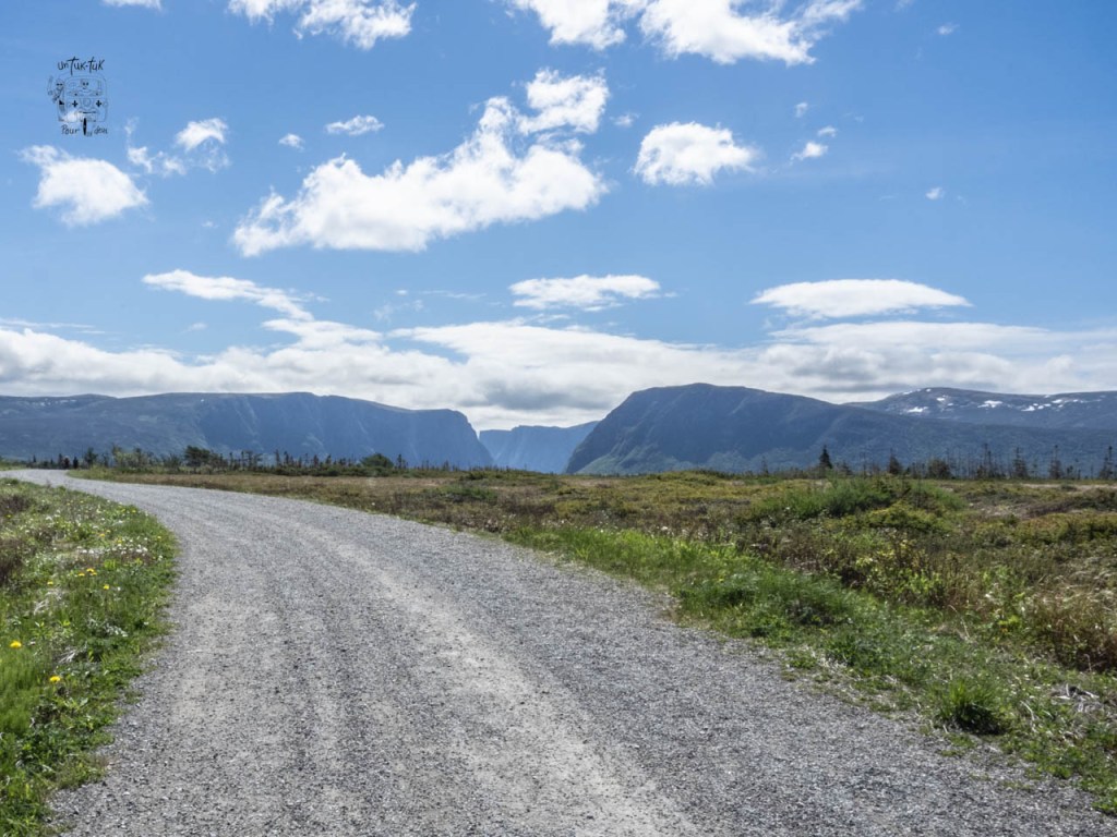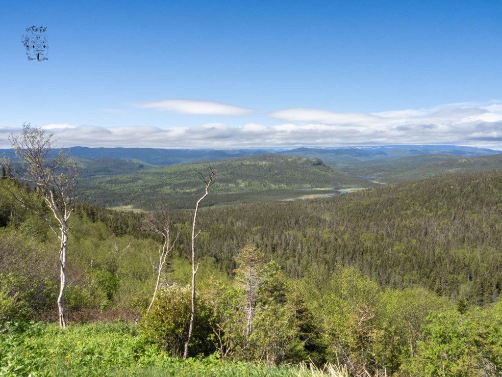 Nous arrivons dans la partie nord du Parc. Un petit arrêt au centre d’accueil pour prendre des informations sur les sentiers et sur la possibilité d’une croisière sur l’étang Western Brook, suivi d’un trek avec guide au bout du lac. Tsé, pour avoir le même point de vue que sur la photo du guide 🤩. À ce sujet, on nous dit que c’est la même compagnie privée qui organise les croisières et les randonnées, que ce n’est pas encore commencé et que ça se détaille quelque chose comme 400 $ CAN par jour par personne. Quoi ? Nous passons notre tour, mais sachez que la sortie d’une durée d’environ 8 heures comprend le 3 km du début, le bateau et le retour par le même chemin. Par ailleurs, on nous confirme également que le sentier du sommet du mont Gros-Morne (le plus spectaculaire) n’est pas ouvert aux randonneurs afin de permettre une meilleure nidification des oiseaux. Il sera accessible à partir de la fin juin, mais ça, nous le savions déjà !