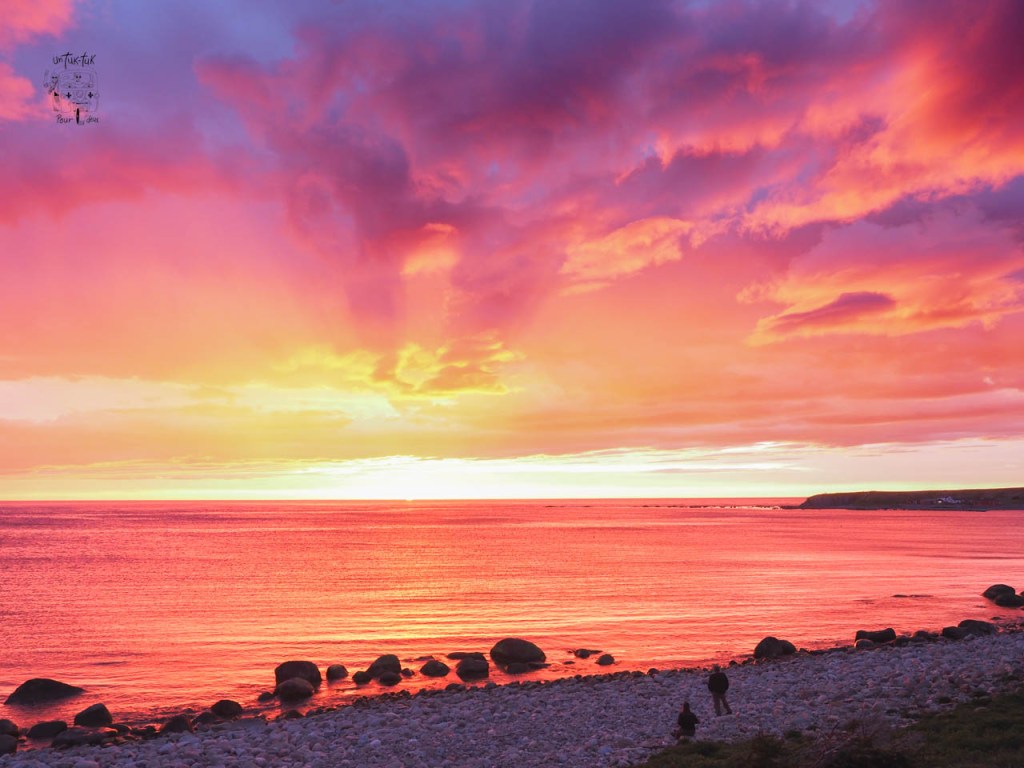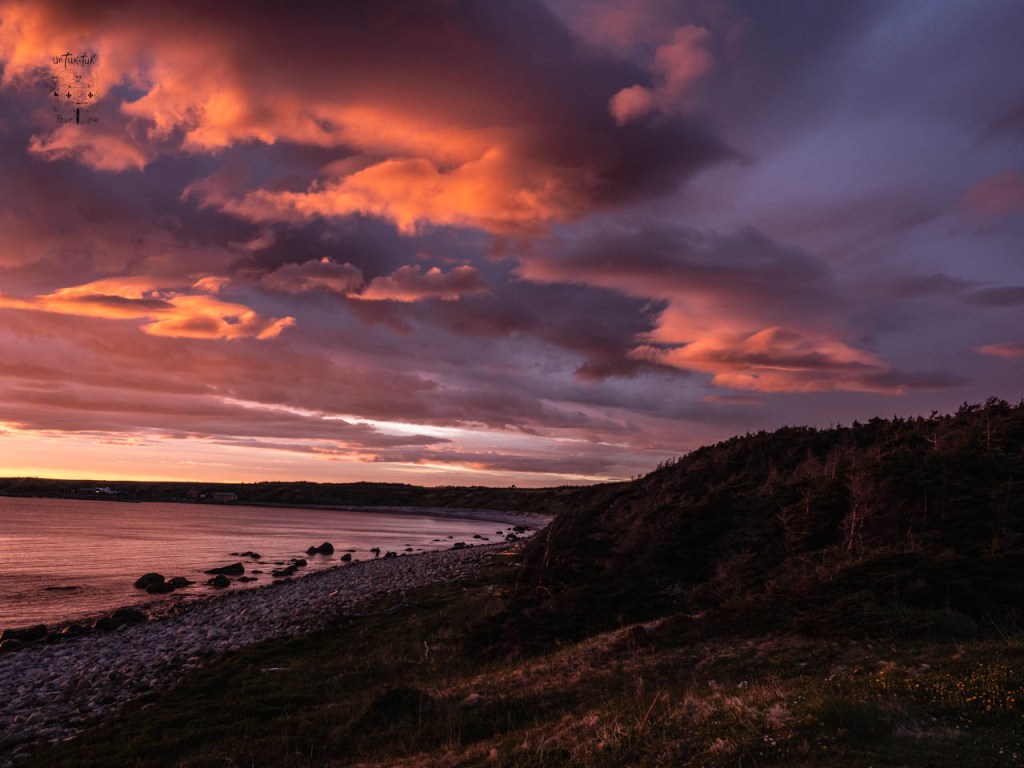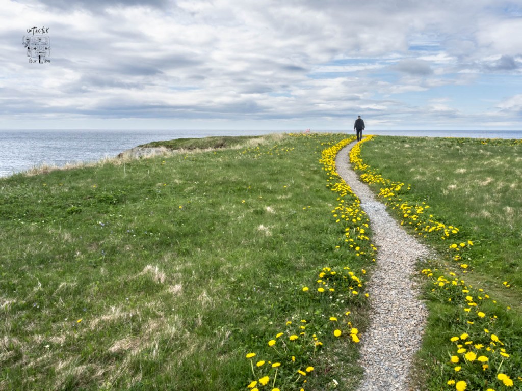 Allô Jo! Moi aussi j’aime beaucoup le sentier aux fleurs jaunes. En réalité, ces fleurs sont des pissenlits. S’il y a une chose que les Terre-Nuviense ont compris c’est qu’elles sont très importantes pour la survie des abeilles. Il y en a partout, sur tous les terrains privés. C’est très beaux quant elles sont toutes fleuries. On a eu droit effectivement à quelques couchers de soleils remarquables, mais ils étaient souvent annonciateurs de mauvais temps pour le lendemain ;-). Beaucoup beaucoup de route, qui valaient la peine… mais pas toujours! Tout est discutable et relatif bien sûr. Chacun, avec ses diverses expériences, y voit du positif ou du négatif. Alors, on laisse les gens trancher avec les photos.