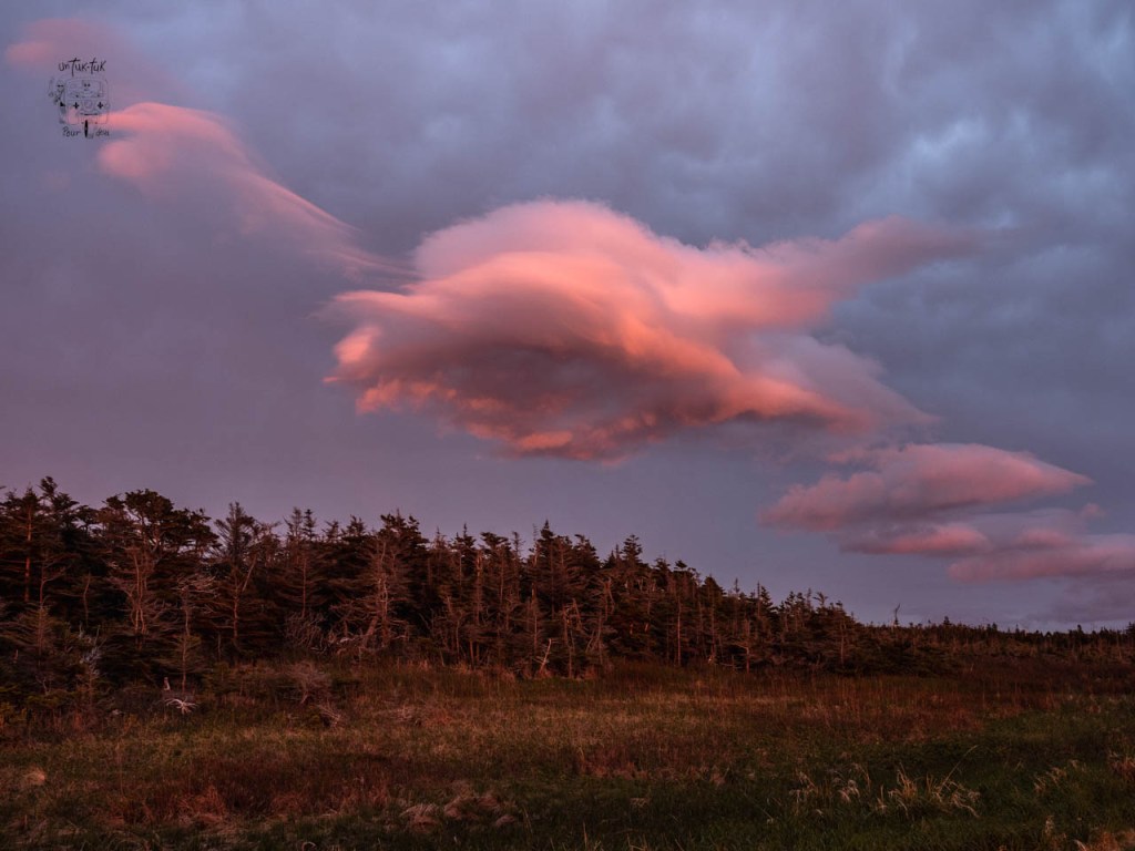 Bon, ça fait maintenant 13 jours que nous sommes arrivés sur l’île et il a plu certainement au moins 14 jours ! C’est à peine exagéré ! Ce matin, nous avons vérifié et contrevérifié les prévisions météorologiques vers l’ouest où nous nous dirigeons (St. Johns et la péninsule d’Avalon) et ailleurs dans la province. Résultats : de la pluie pour les 10 prochains jours dans notre direction et dégagement de quelques jours dans l’est (Gros-Morne et St. Anthonys au nord).