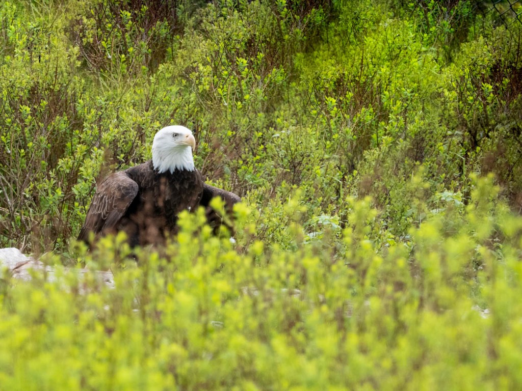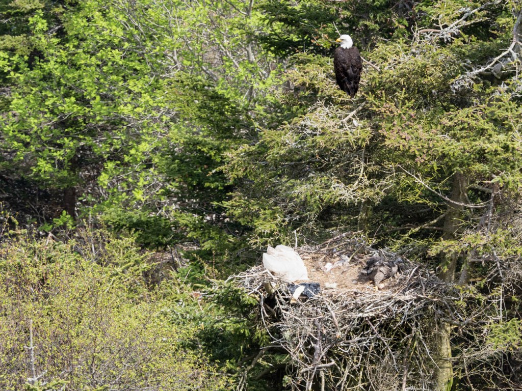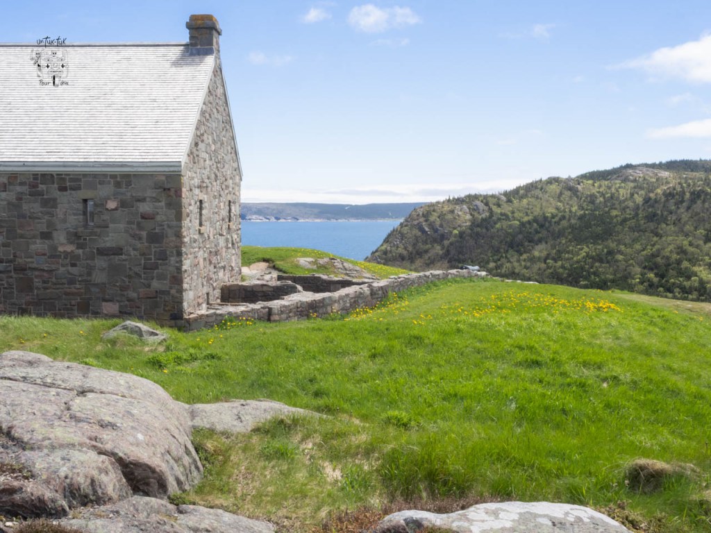 Le site est bien conservé, évidemment c’est du Parcs Canada ! Les vues sont splendides et plusieurs sentiers de randonnée sont aménagés, dont un qui nous attire particulièrement. Celui qui se rend au village de Quidi Vidi situé dans une baie de l’autre côté de la montagne/colline. Un chemin d’à peine un kilomètre qui descend abruptement. Hmmm ! Le retour exigera beaucoup plus, mais ce n’est rien comparé à la belle surprise qui nous attendait dans la descente. Un immense nid avec un pygargue et son rejeton. Wow ! C’est fabuleux de pouvoir les observer.