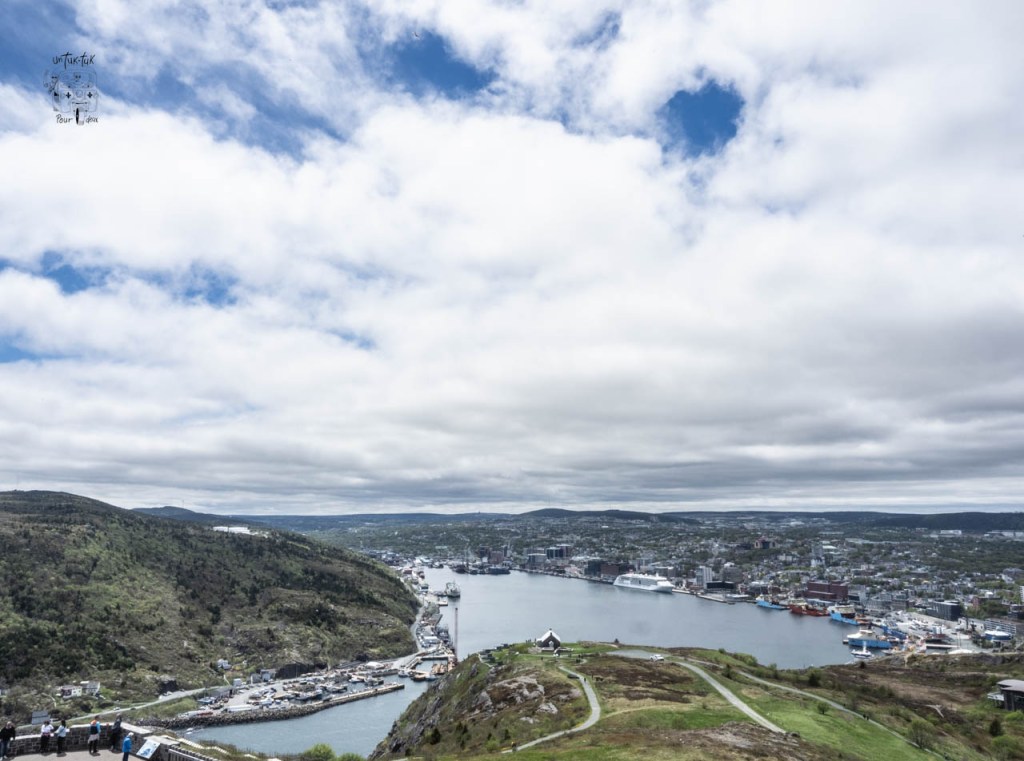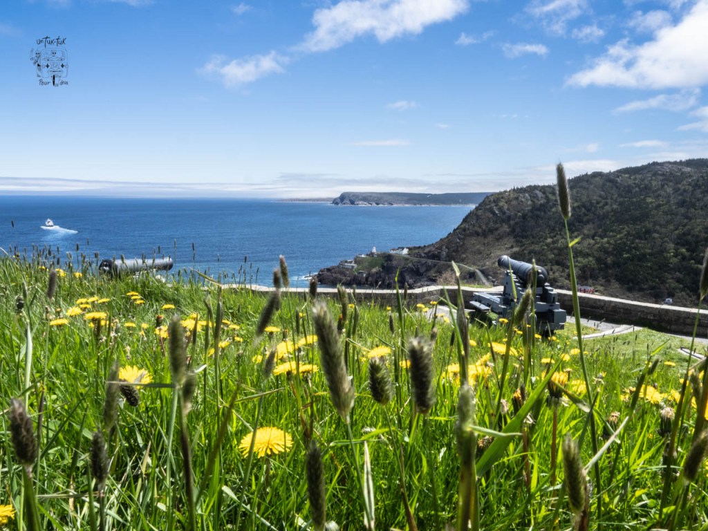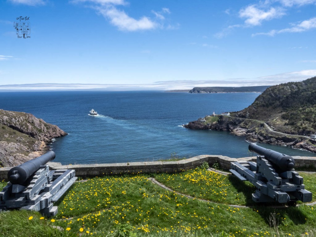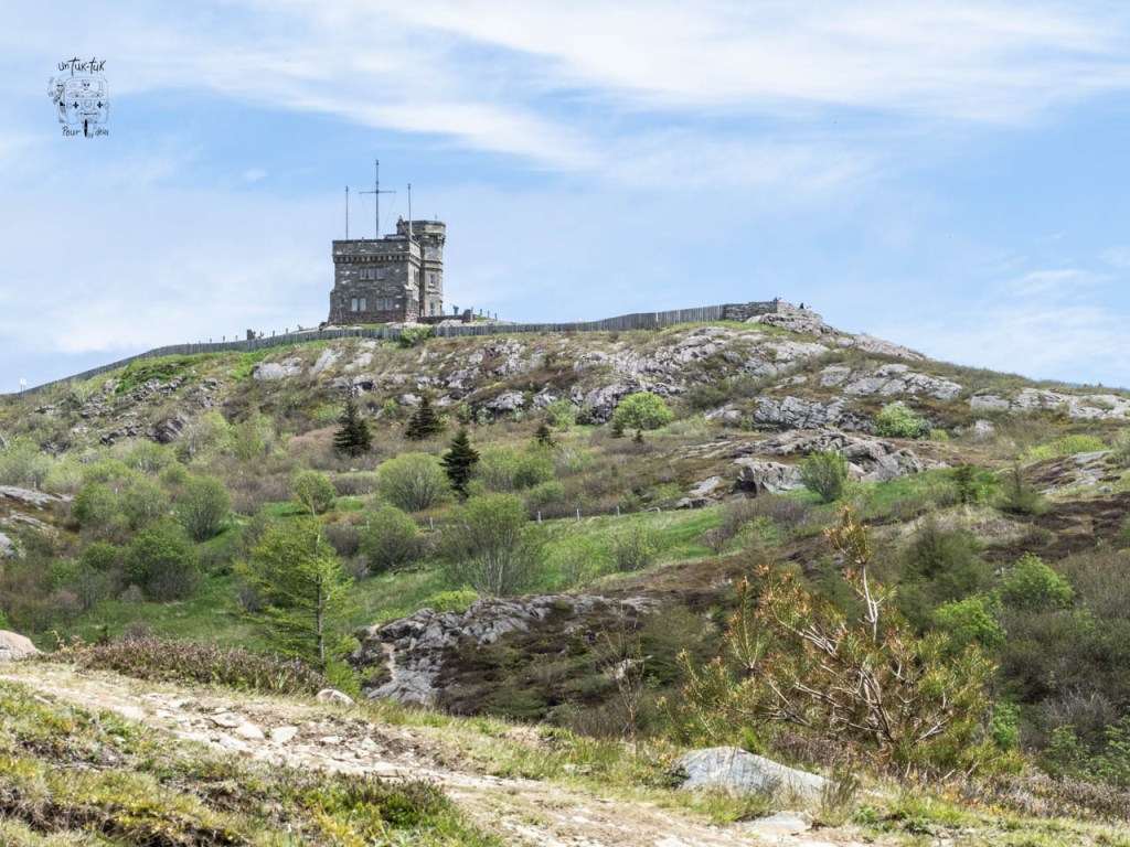 Et nous voici enfin arrivés au lieu historique le plus important de la région de St. John’s, le Signal Hill et plus particulièrement la Tour Cabot. Il faut comprendre que la ville est située dans une immense baie en eau profonde fermée par un goulot formé de collines espacées d’à peine quelques centaines de mètres de large. Le site est juché sur sa partie sud et offre un magnifique panorama sur la capitale tout en assurant des vues en plongée vers l’océan et l’entrée du goulot.